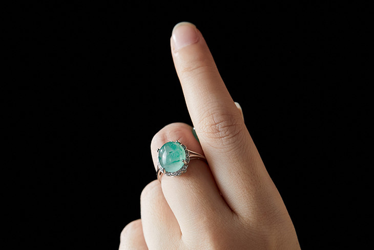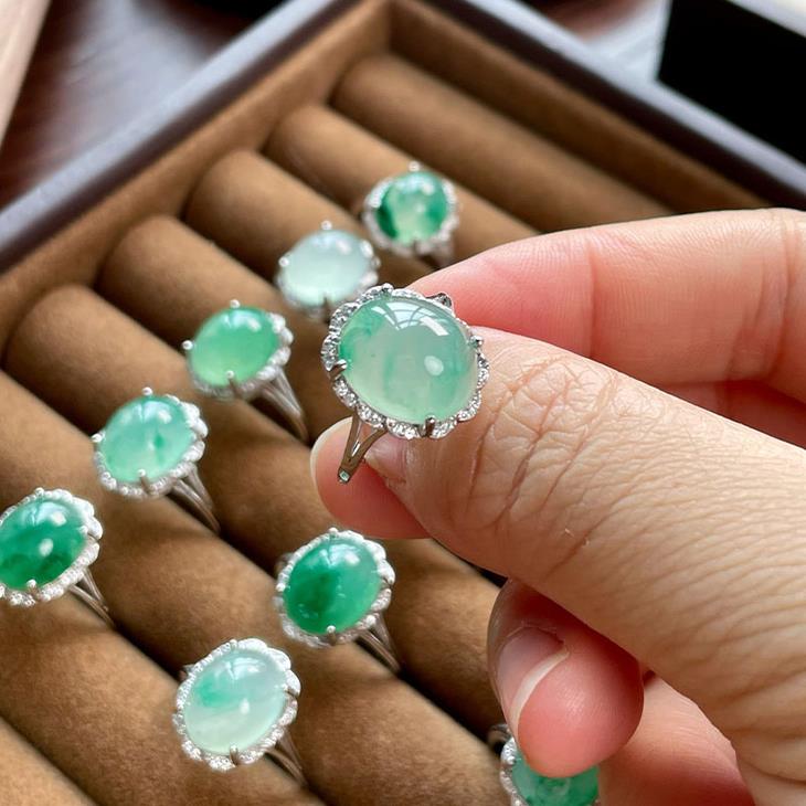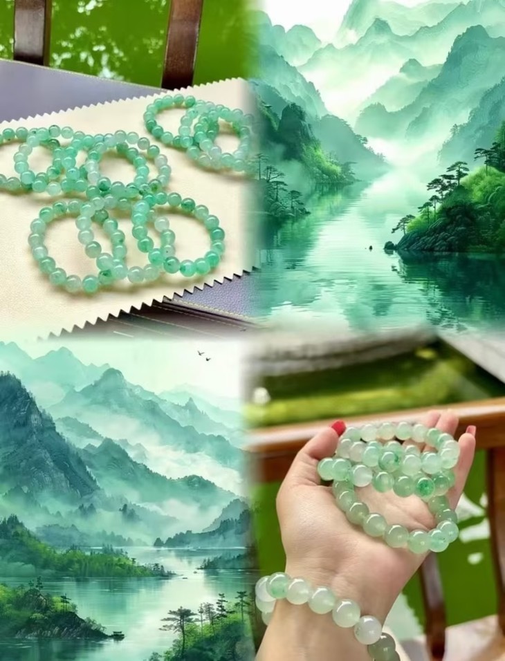 这款冰种飘绿,就像一汪清泉,亦似青山云雾,每一颗都独一无二。