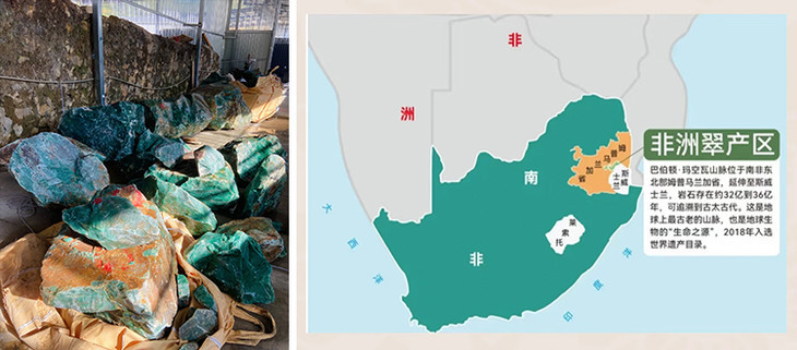 我们这批货所用到的非洲翠原料,就是从这里出产的老种水非洲翠,种老飘花漂亮,稳定性会更好。