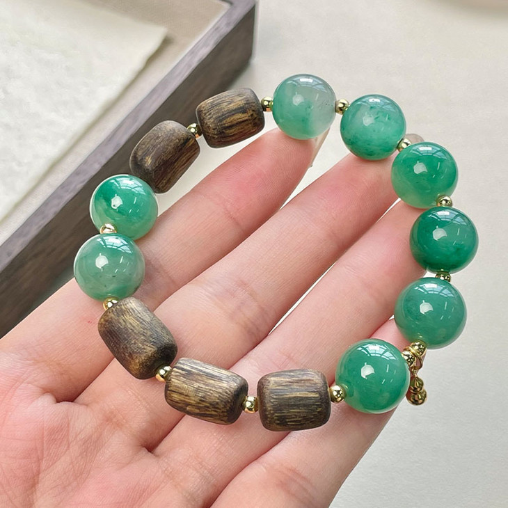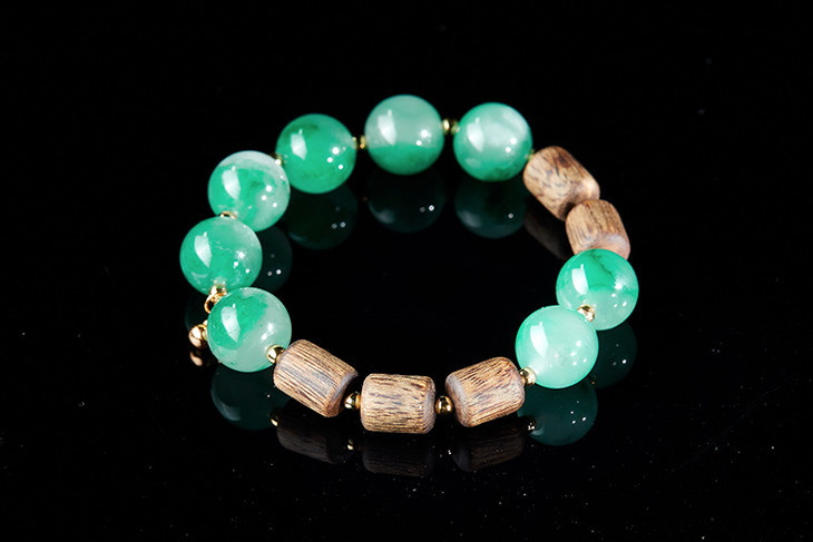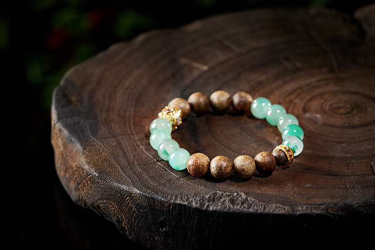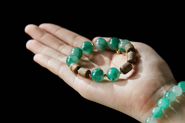 与奇楠沉香珠相搭,一半沉香一半翡,戴在手上就像置身大森林之间的气息,更浓郁的沉香韵味。