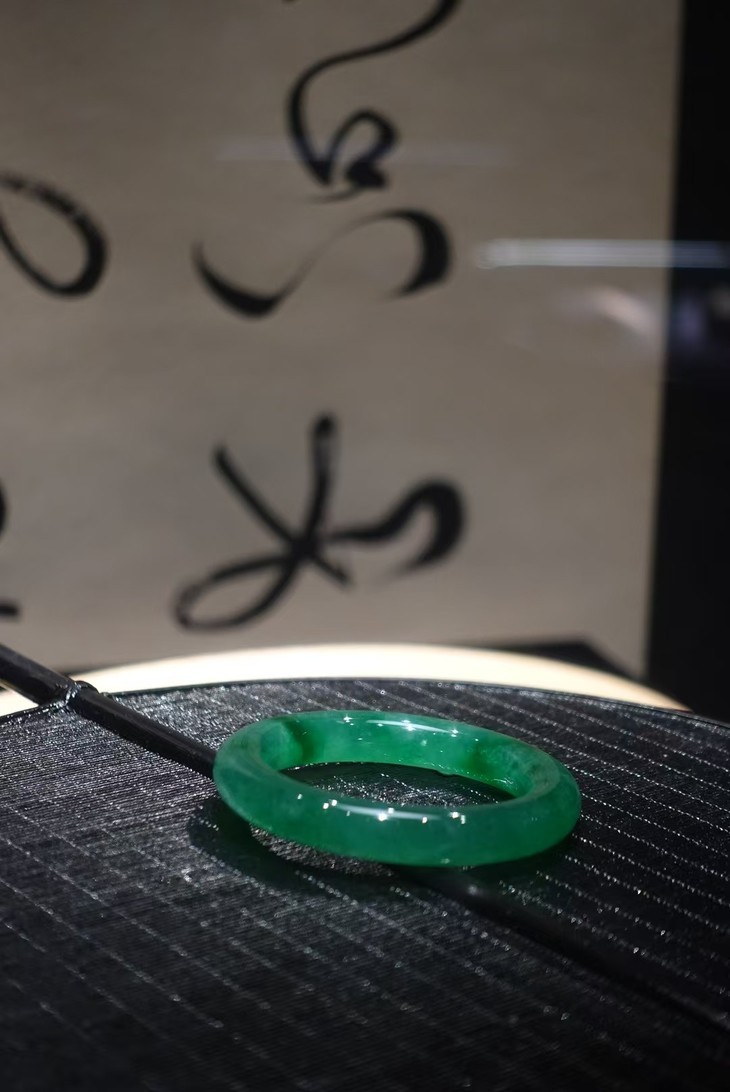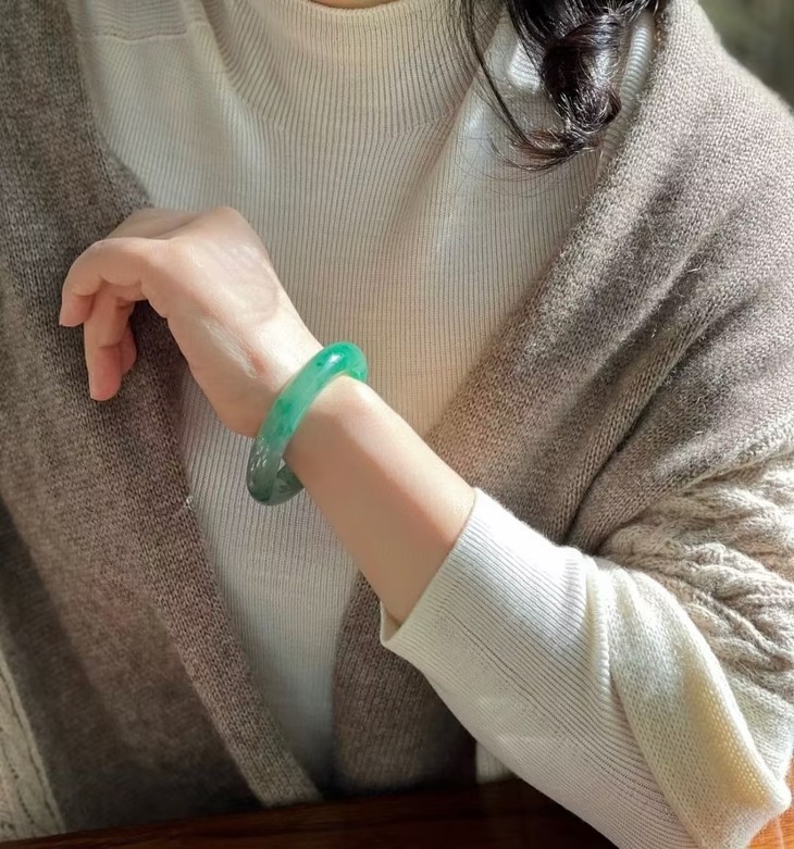 这水头、这色泽,在自然光下那叫一个绝,莹莹润润的,就像把春日的盎然绿意都锁在里头了。