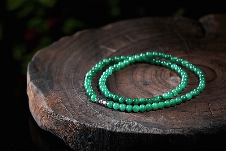 只选货头级别的翡翠珠子,妥妥的浓阳绿,每次戴上都忍不住感叹: