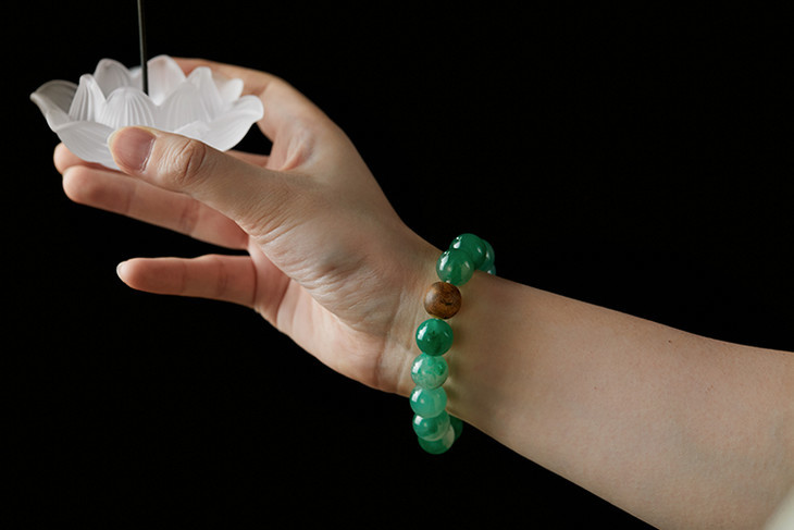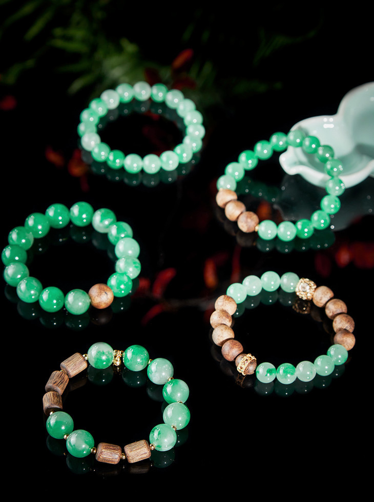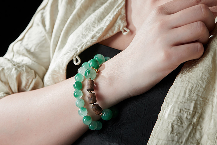 戴在手腕上的一抹翠,犹如春盛生发的凝翠,铸就腕间山水的贵气,静谧诗意,清风雅韵。