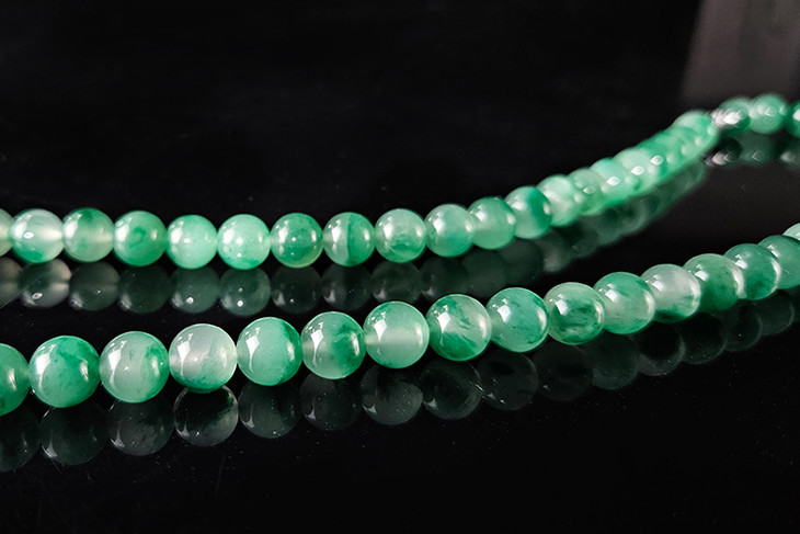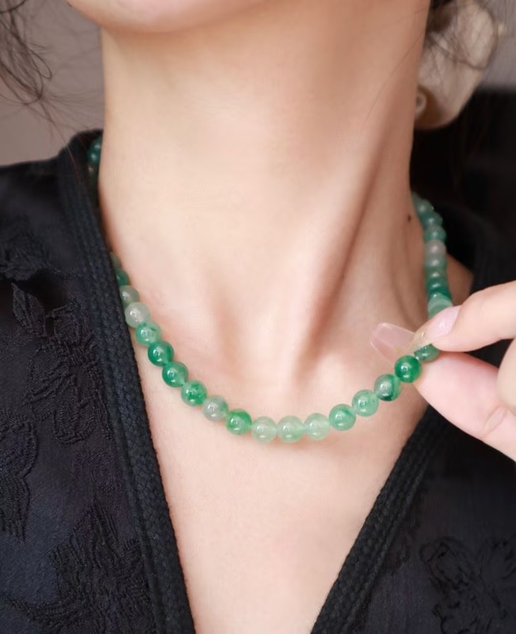 如果你觉得上一条还不够贵气,那看看这条吧,8mm的珠径作为项链就真的很珠宝,不是翡翠胜似翡翠。