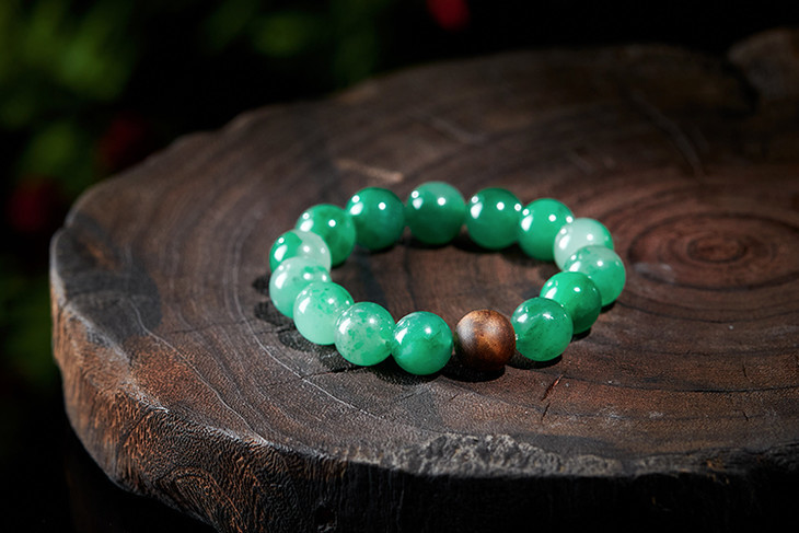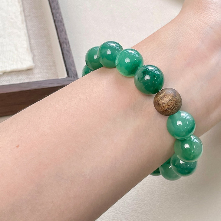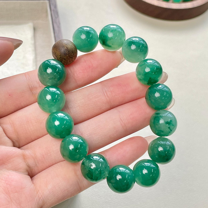 这款手串选用12mm更为难得的大珠入串,冰油水透,每一颗非洲翠珠都有别致的迷你风景。