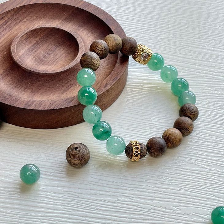 搭配五颗大珠径沉香桶珠,以金色小珠点缀,还有一个迷你的金色葫芦配珠,珠光宝气感瞬间提升。