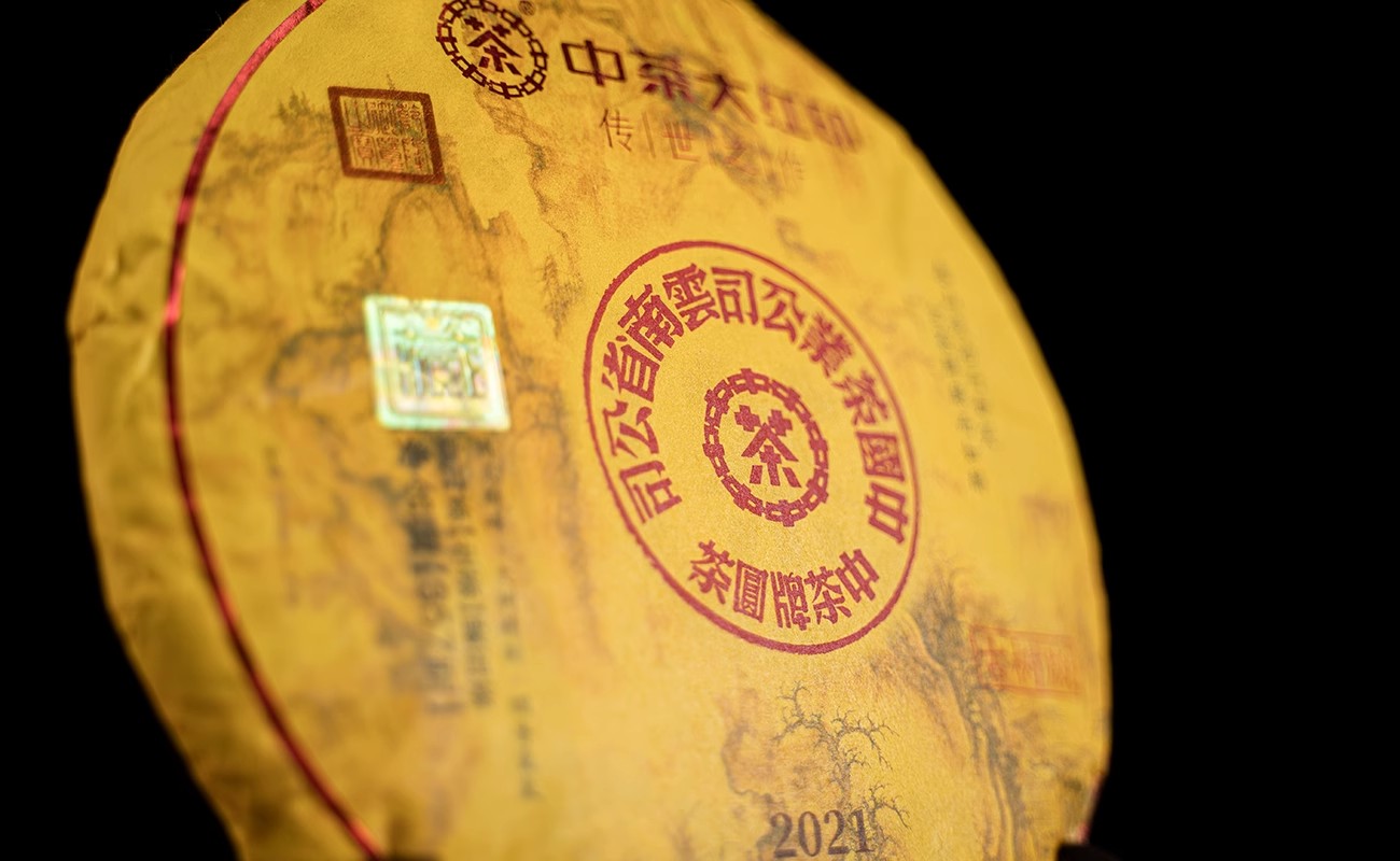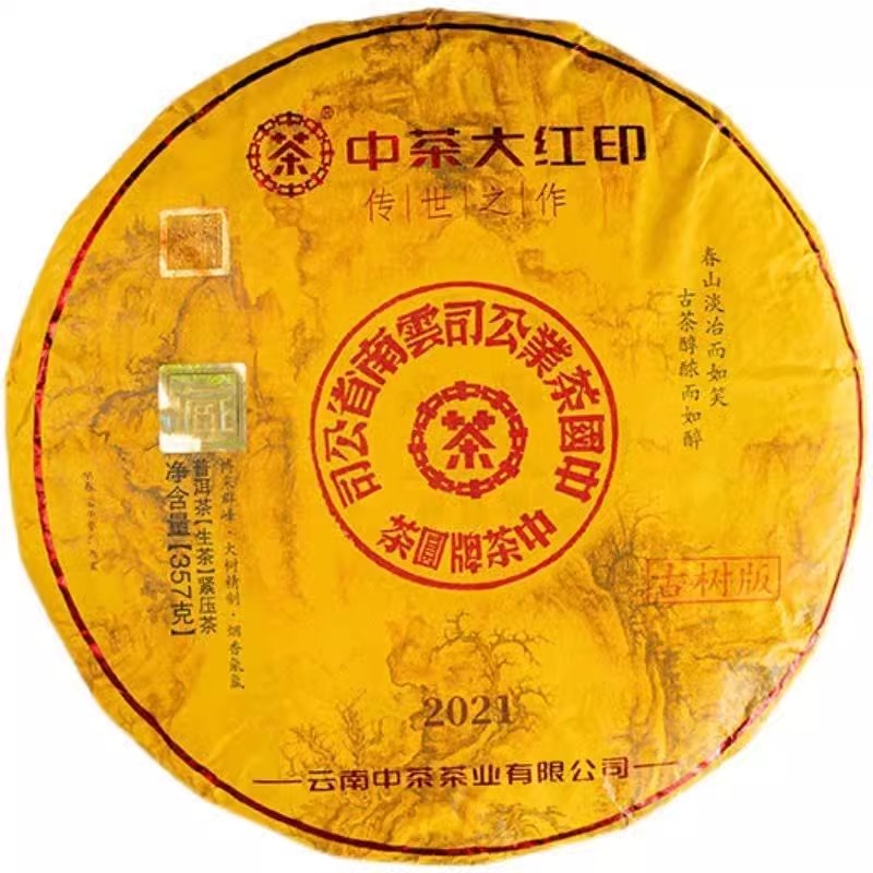 中茶牌茶叶2021年大红印传世之作古树版普洱茶生茶357g古树大黄饼/云南干仓直发