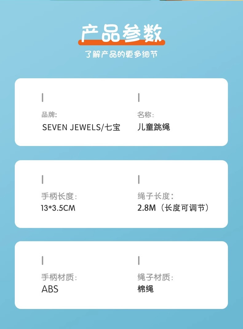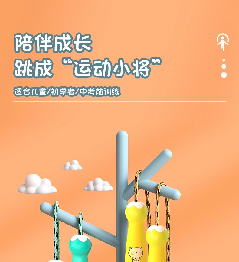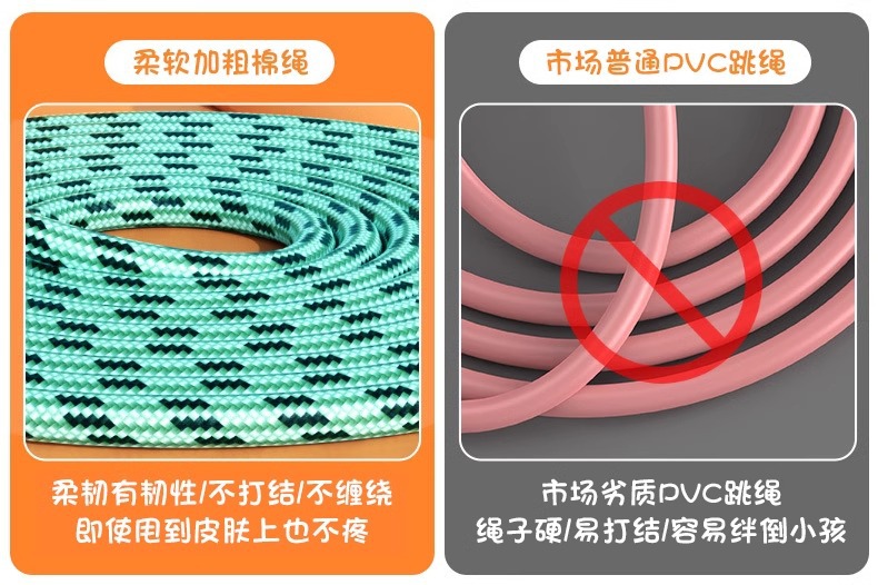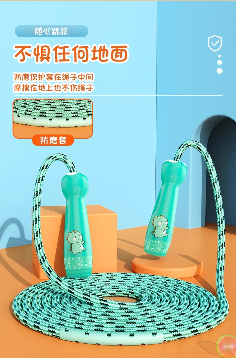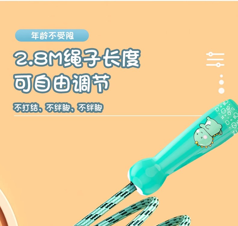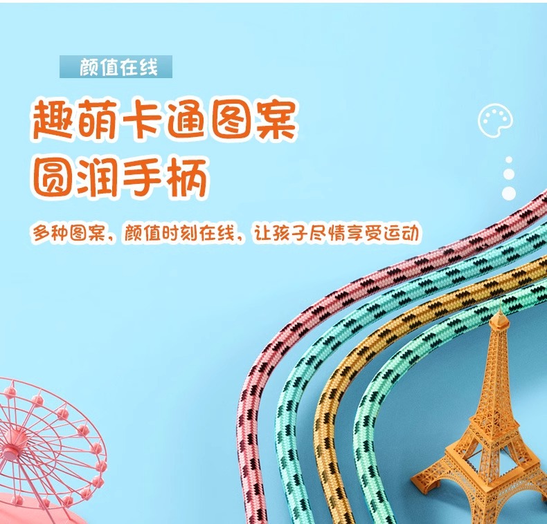 【陪伴成长!跳成“运动小将”】趣萌卡通图案,轻松健身必备。柔软加粗棉绳,防磨保护套。自由调节,易收纳。适合幼儿园宝宝、小学生、初学儿童跳绳爆款推荐!