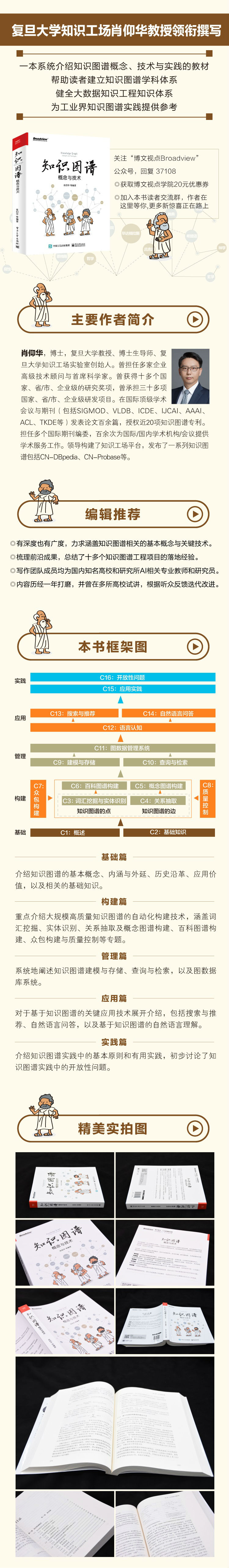 主要作者 肖仰华 博士,复旦大学教授、博士生导师、复旦大学知识工场实验室创始人。曾担任多家企业高级技术顾问与首席科学家。曾获得十多个国家、省/市、企业级的研究奖项,曾承担三十多项国家、省/市、企业级研发项目。在国际**学术会议与期刊(包括SIGMOD、VLDB、ICDE、IJCAI、AAAI、ACL、TKDE等)发表论文百余篇,授权近20项知识图谱专利。担任多个国际期刊编委,百余次为国际/国内学术机构/会议提供学术服务工作。领导构建了知识工场平台,发布了一系列知识图谱包括CN-DBpedia、CN-Probase等。