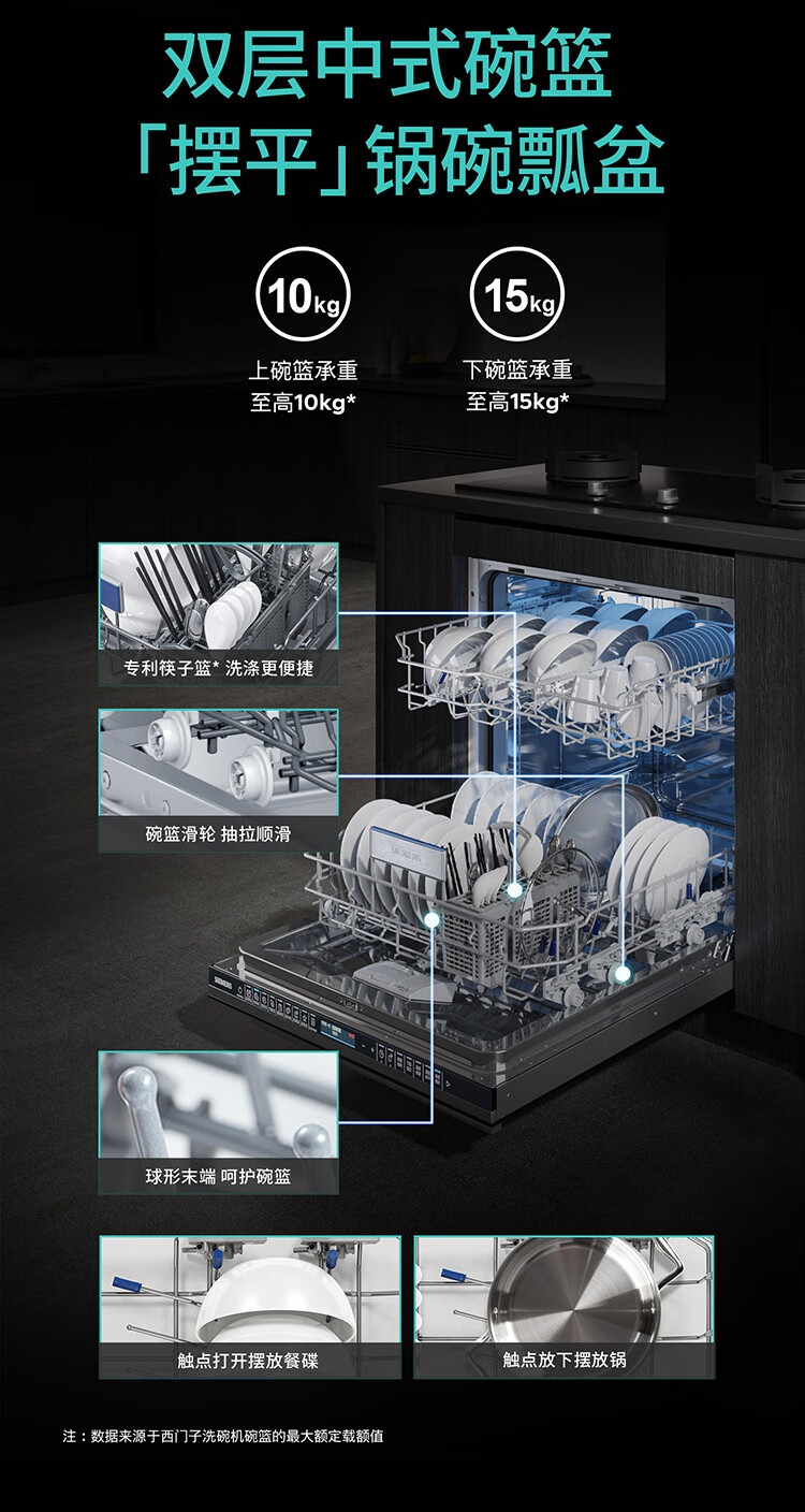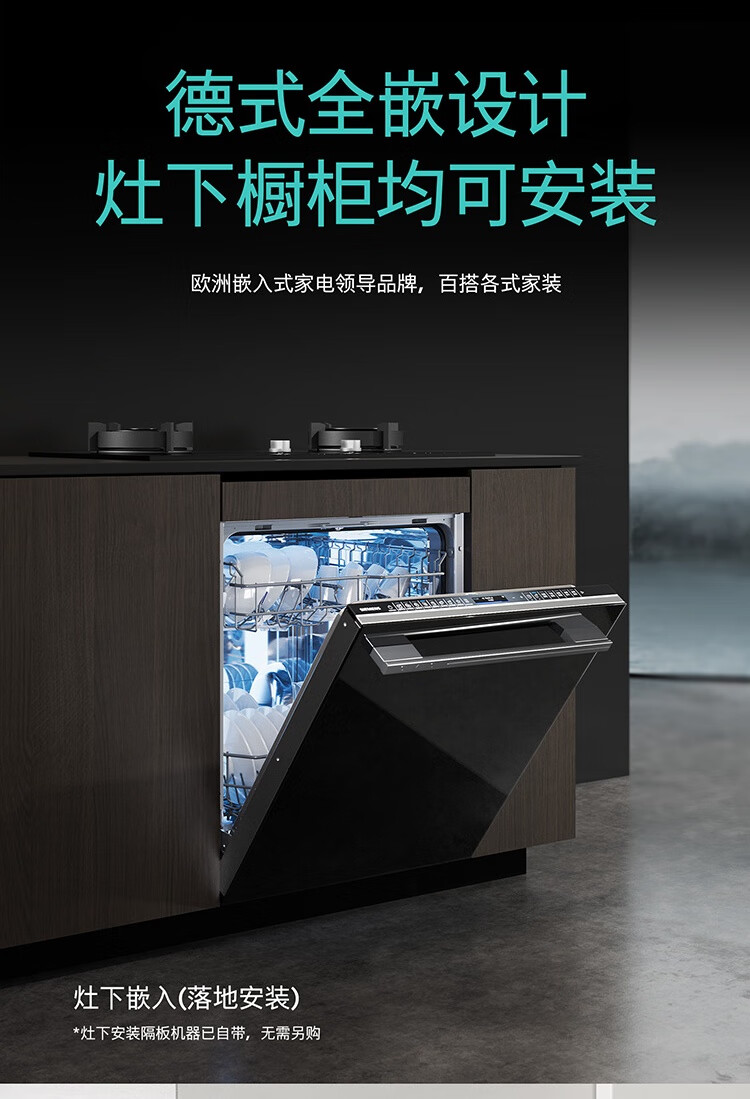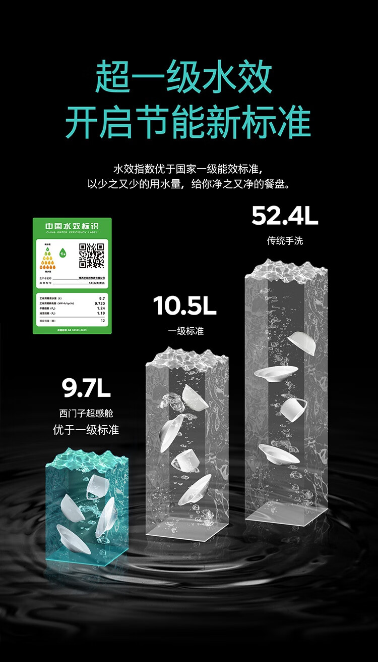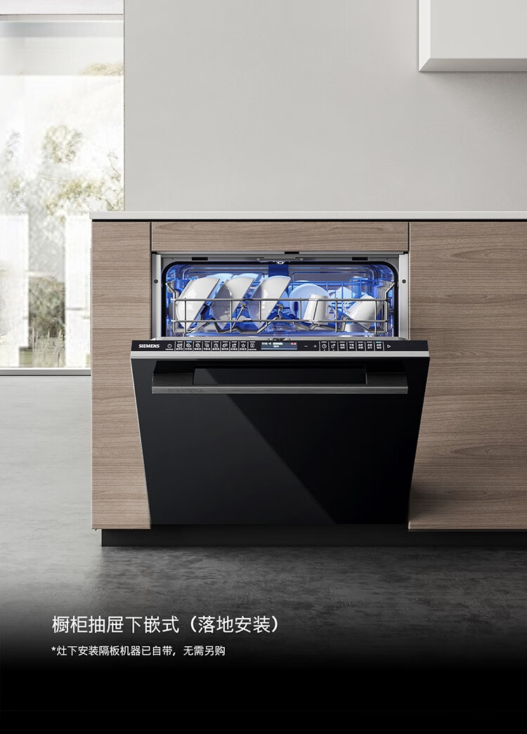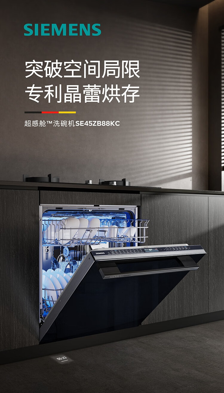 西门子(SIEMENS)灶下大内腔12套嵌入式洗碗机 超感舱精准涡流洗超一级水效晶蕾烘干晶御智能 SE45ZB88KC