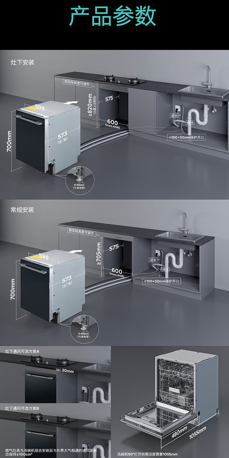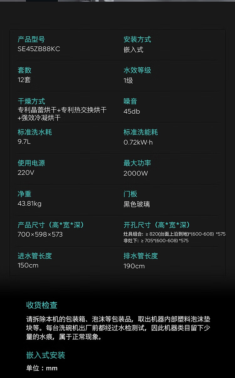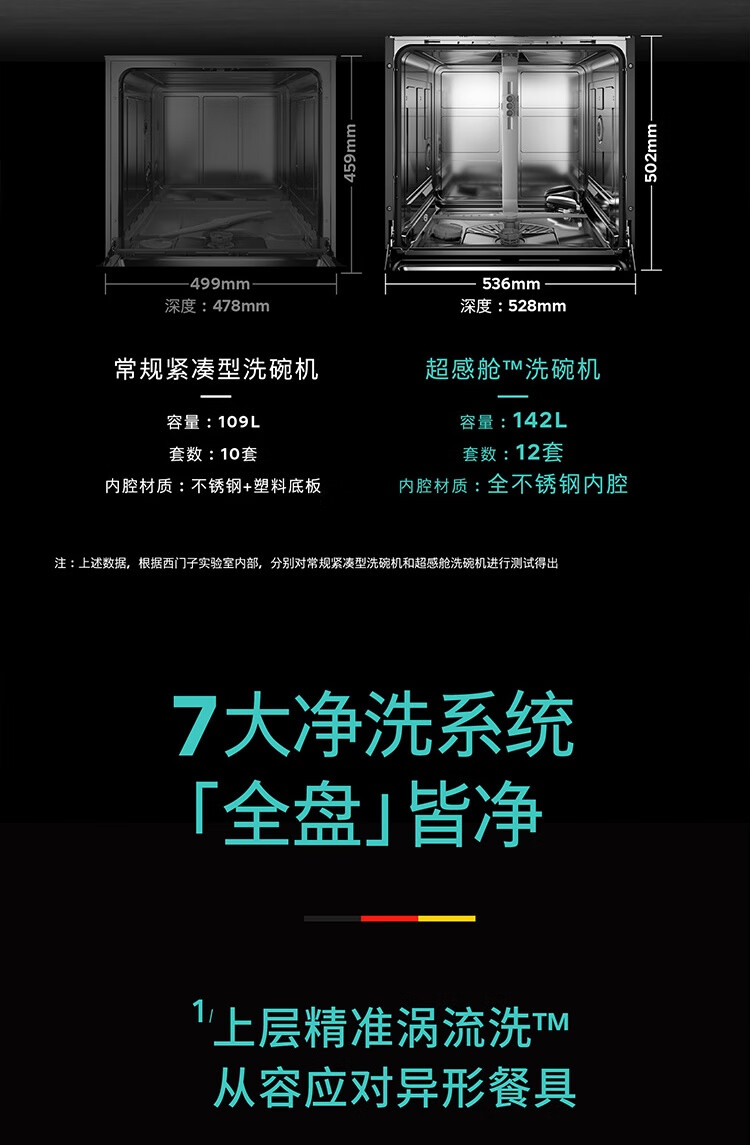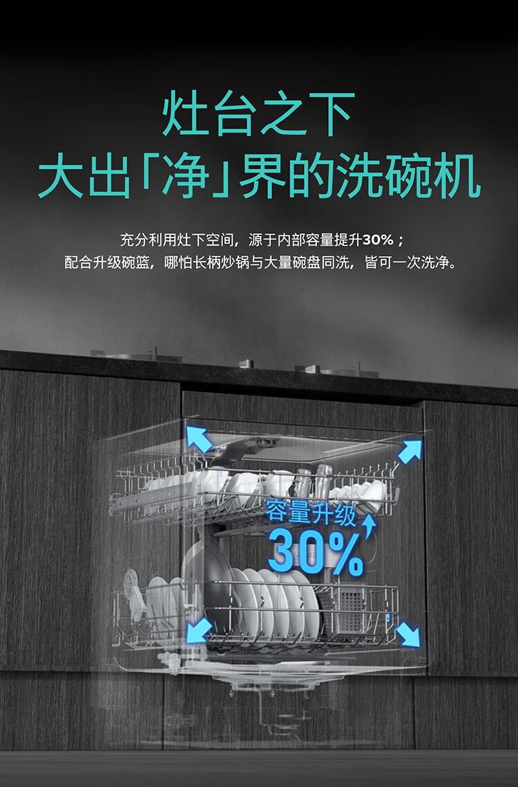 西门子(SIEMENS)灶下大内腔12套嵌入式洗碗机 超感舱精准涡流洗超一级水效晶蕾烘干晶御智能 SE45ZB88KC