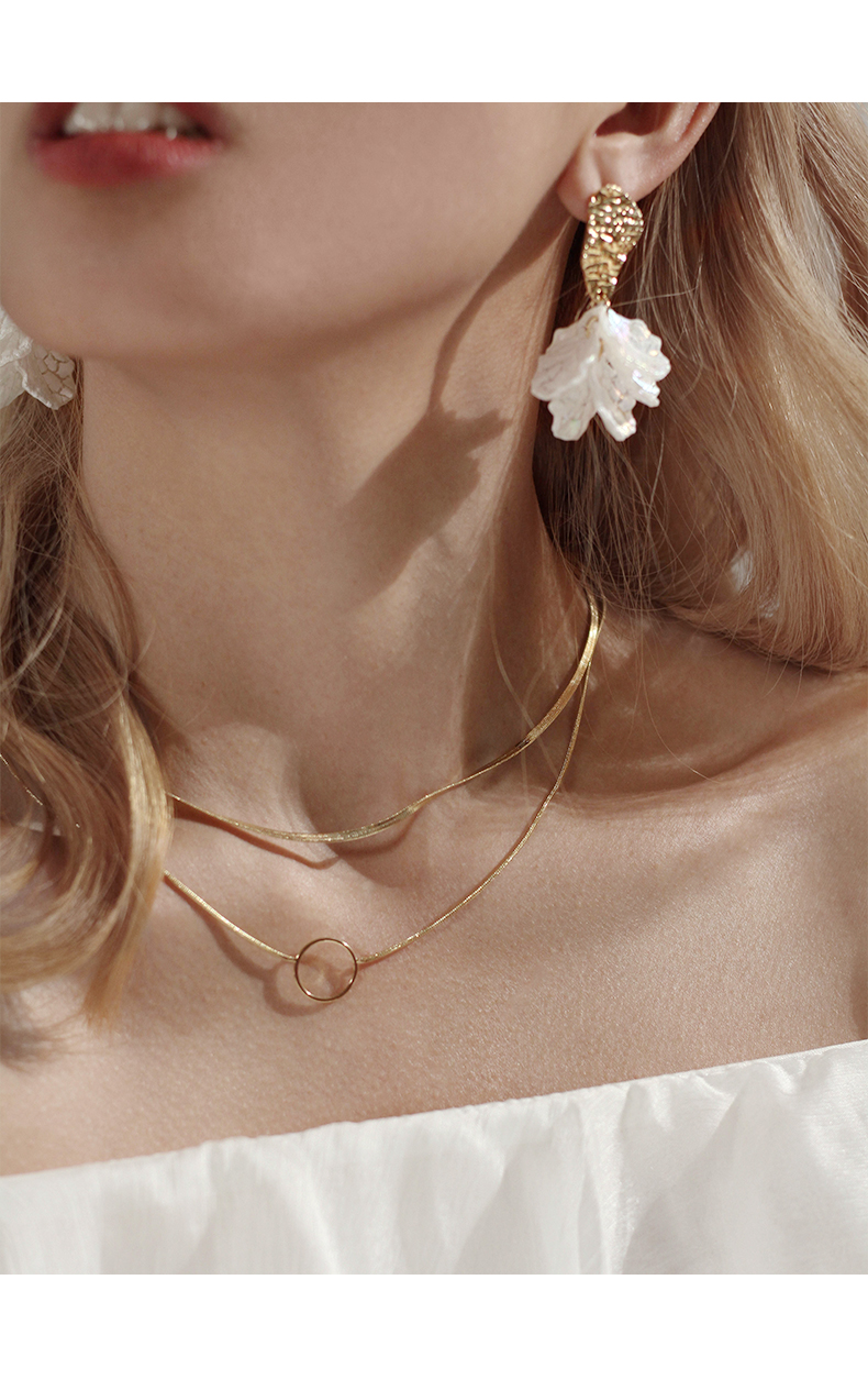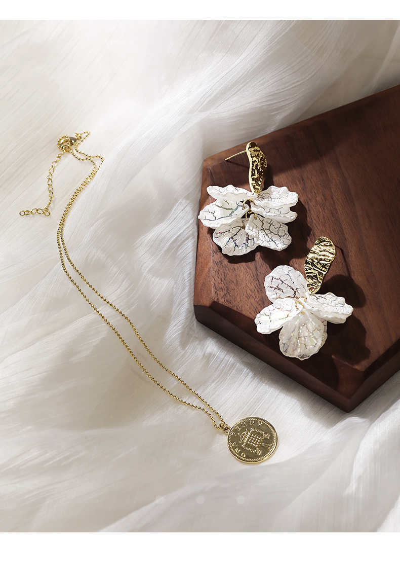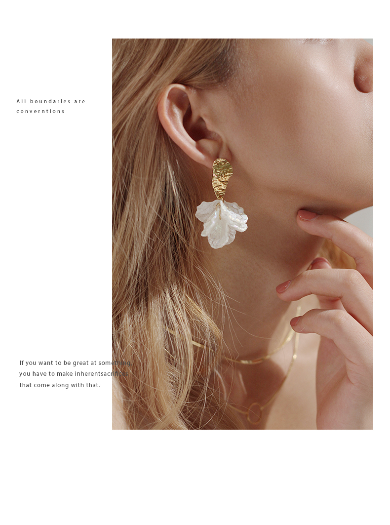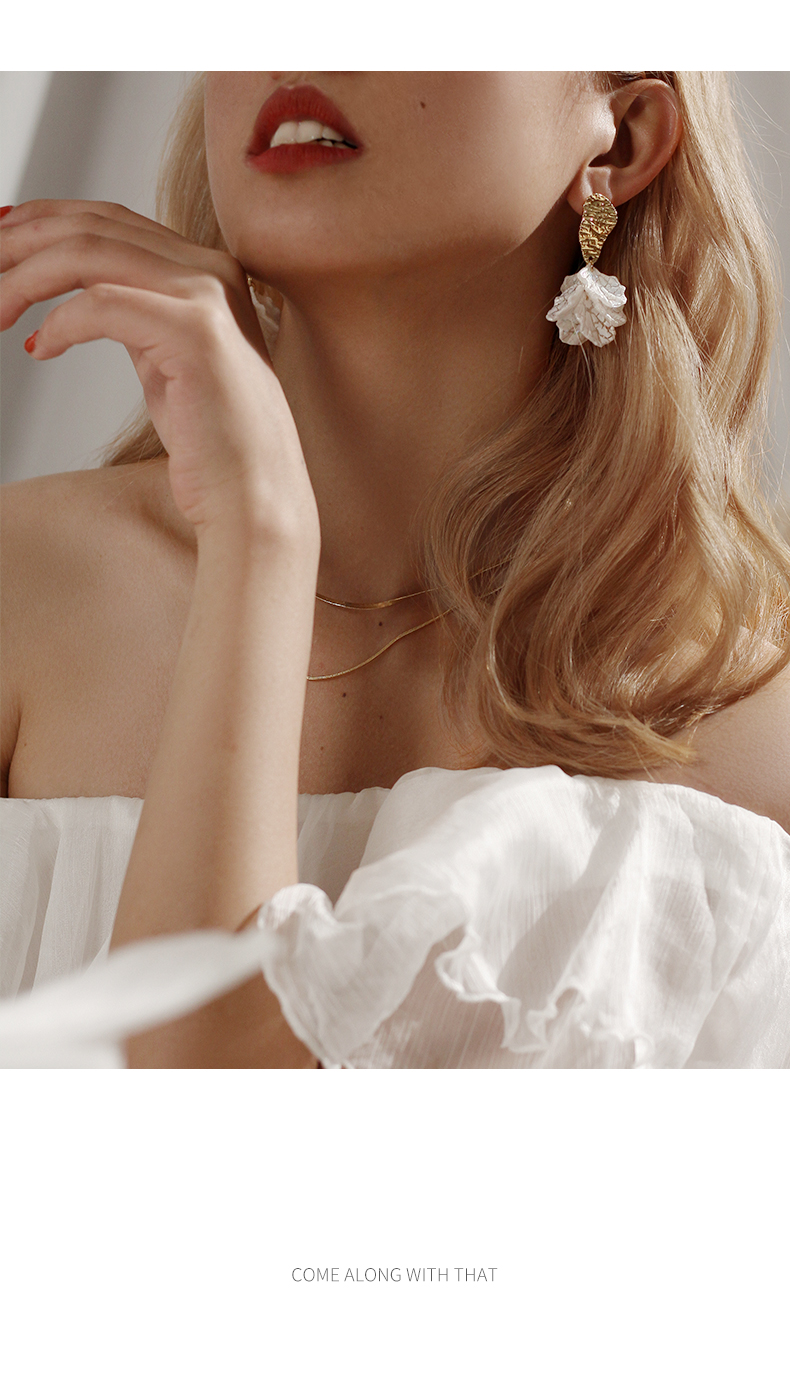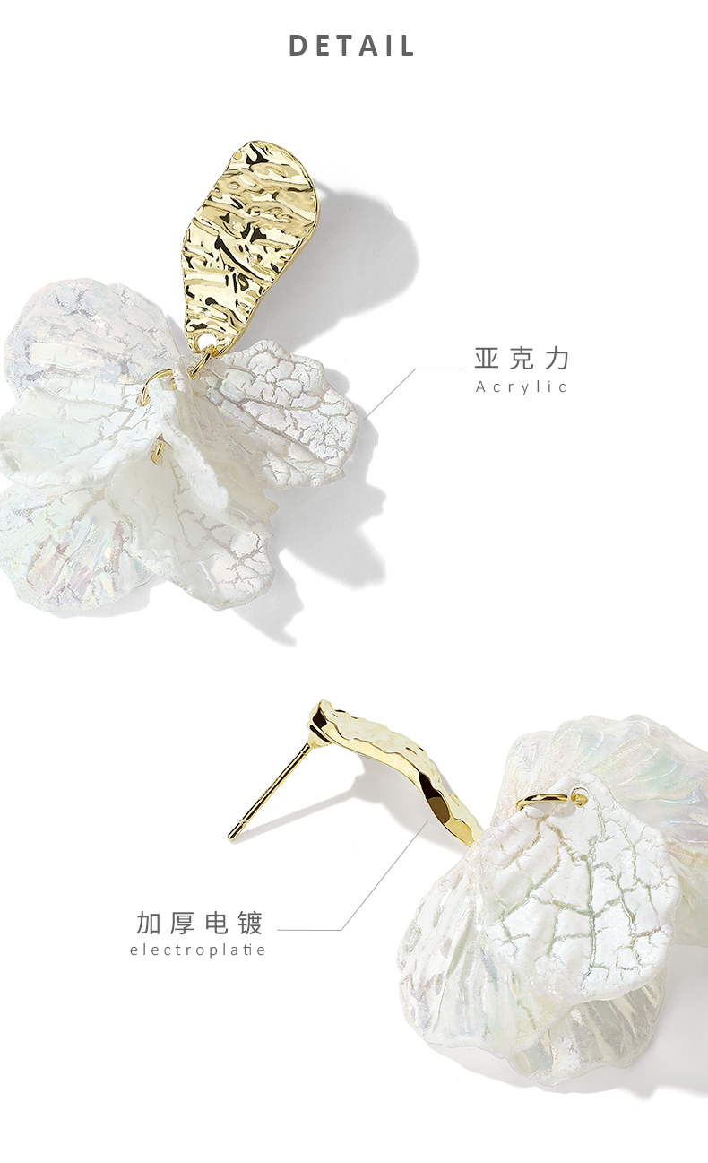 Oflye潮流饰品 白色花瓣耳环女夸张气质森系干花花朵耳坠新款耳钉永生花耳饰