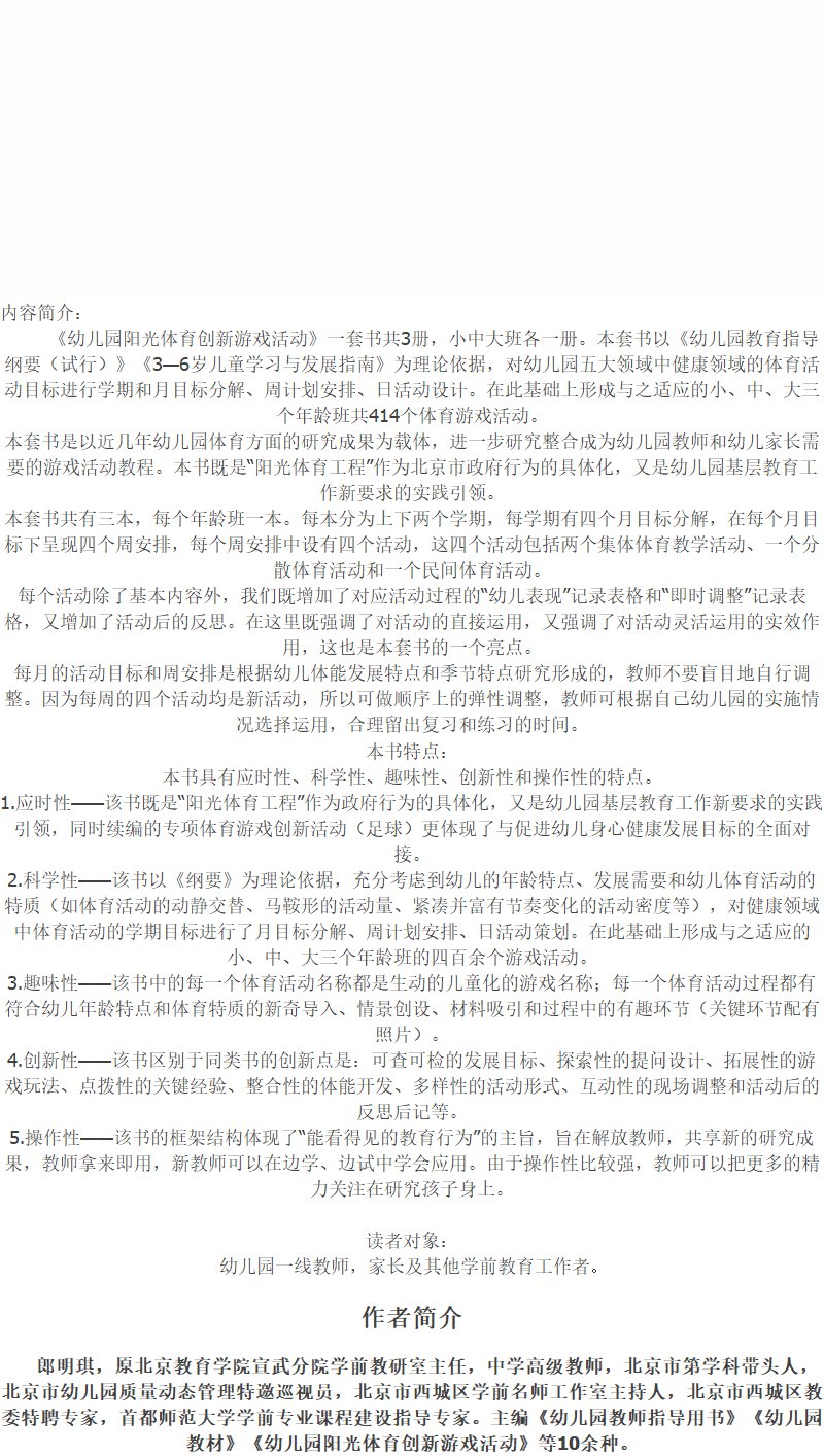 幼儿园阳光体育创新游戏活动(大班中班小班三本一套)郎明琪陈培燕汪旭峰马晓宁
