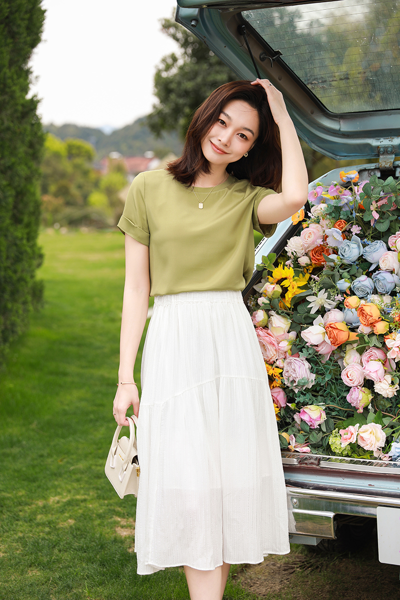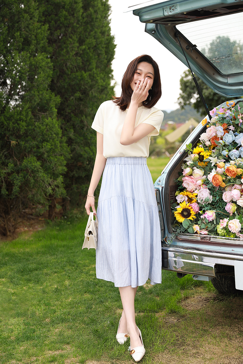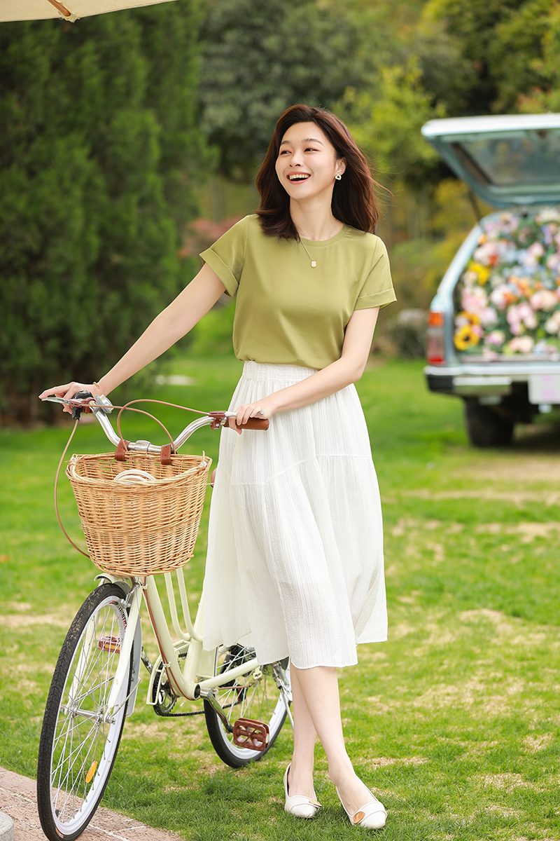 火桐hooton Bubble 60高支精梳长绒棉松紧腰花苞半身裙