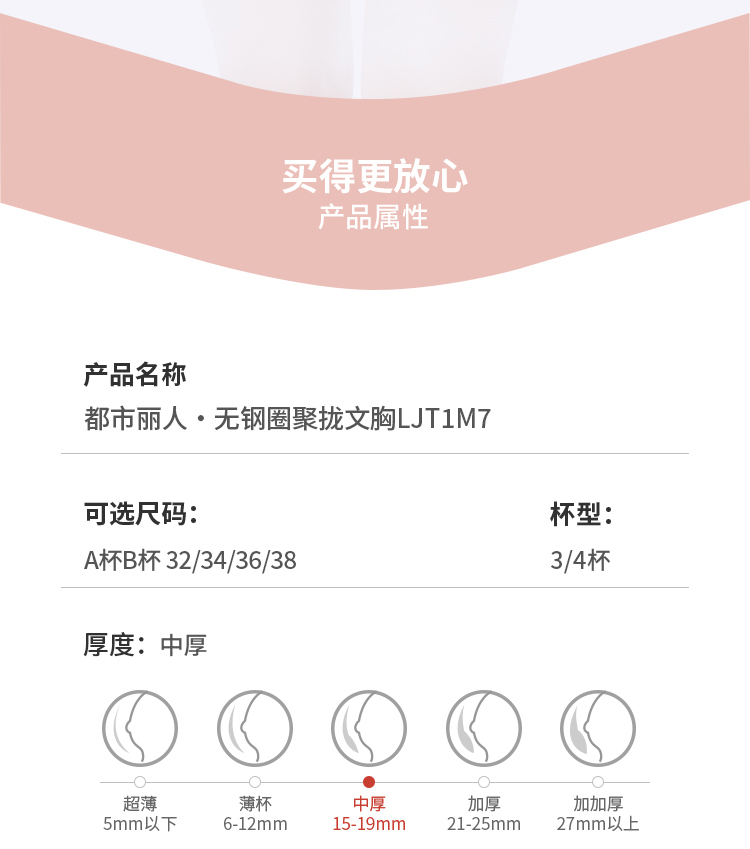 都市丽人调整型内衣舒软挺塑塑身文胸蕾丝中厚塑身内衣3/4杯四排扣LJT1M7