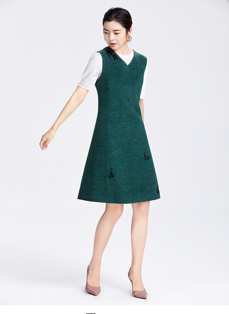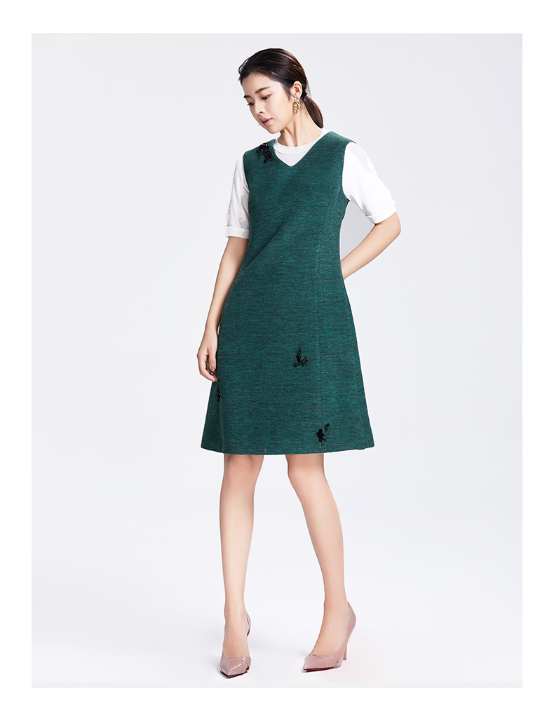 圣三利秋冬装显瘦修身A字连衣裙SL1937148