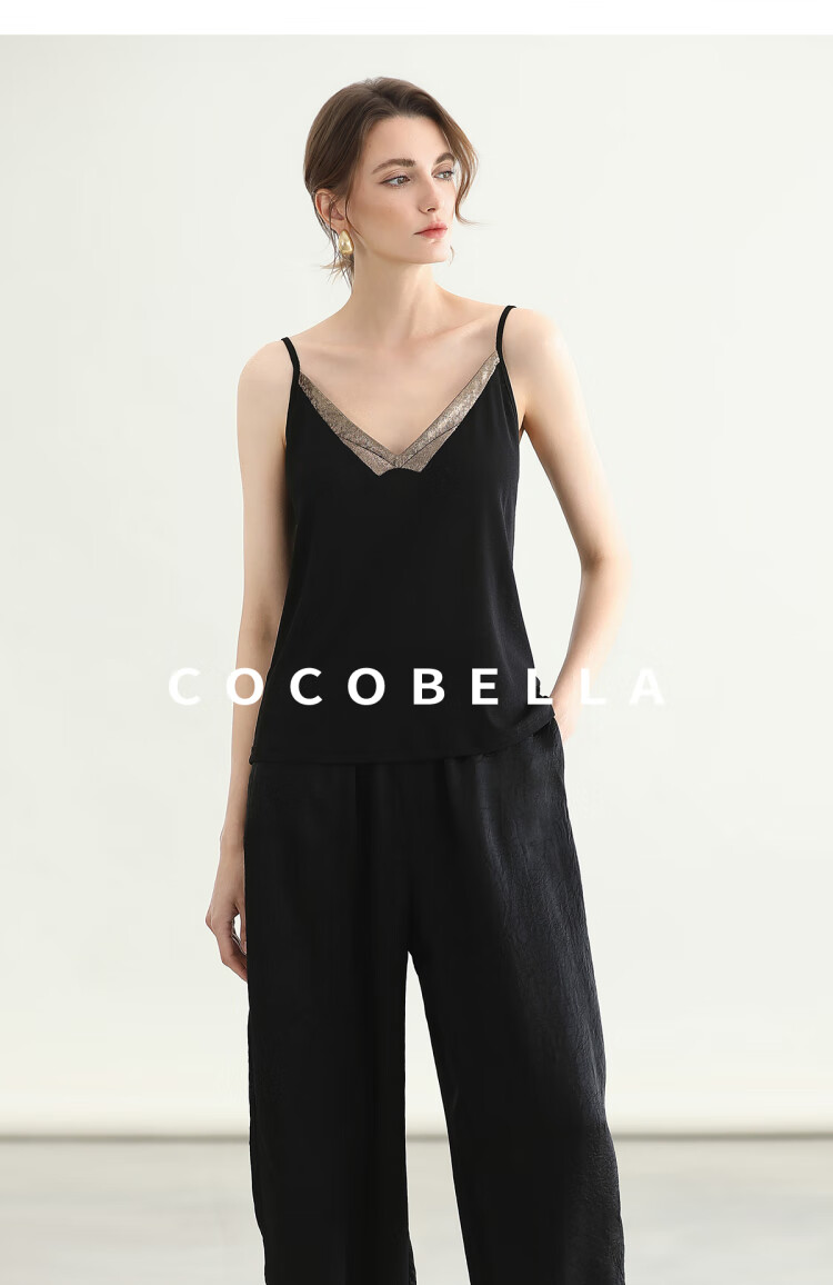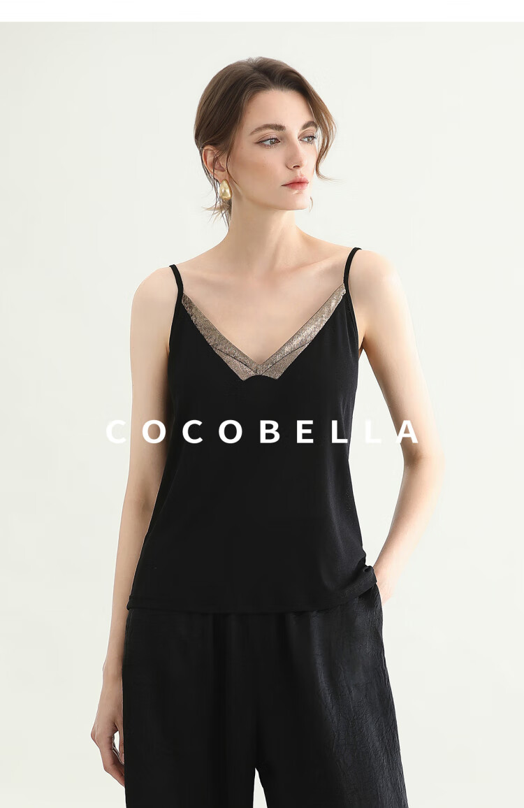 COCOBELLA设计感心机内搭黑色吊带女夏奢感黑金背心VT0028
