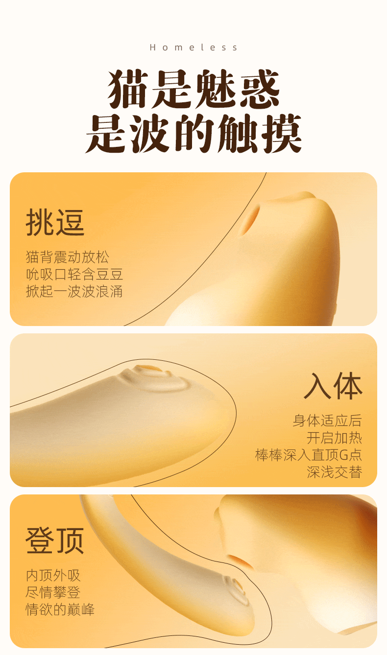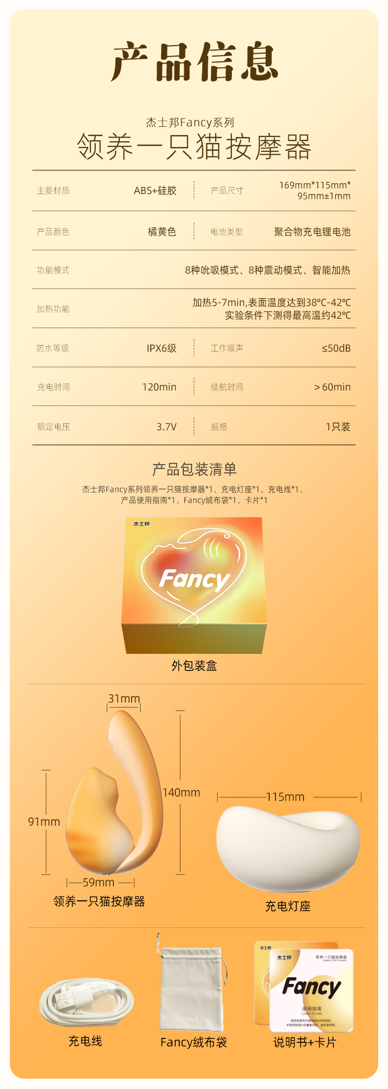 [萌宠按摩器!!]杰士邦领养一只猫吮吸加温可穿戴按摩震动棒