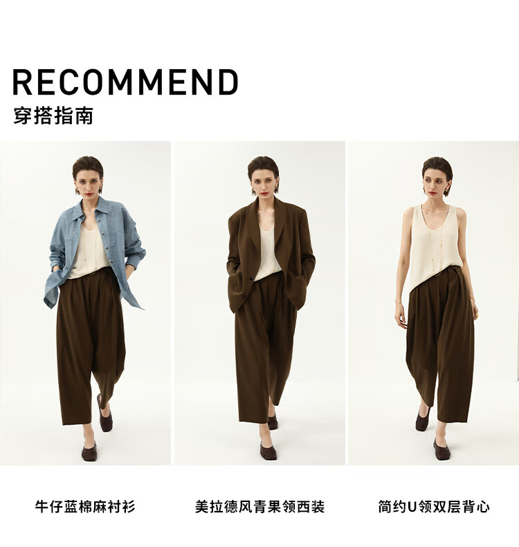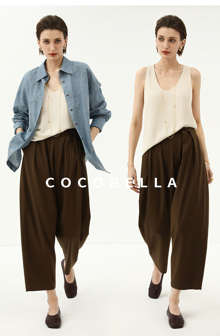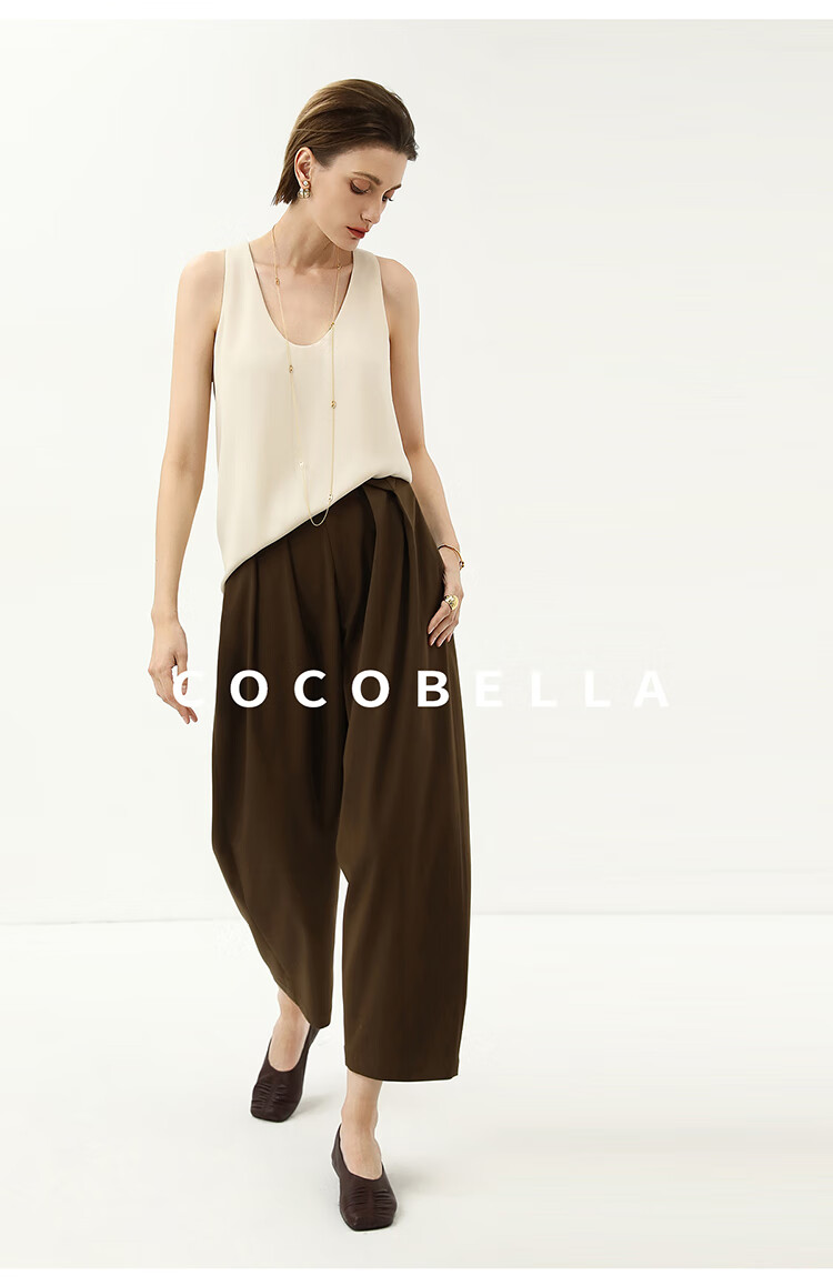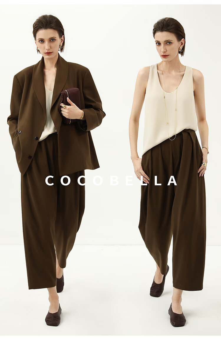 【限时特惠】COCOBELLA静奢商务休闲打褶哈伦裤通勤气质西裤梧桐裤PA3001
