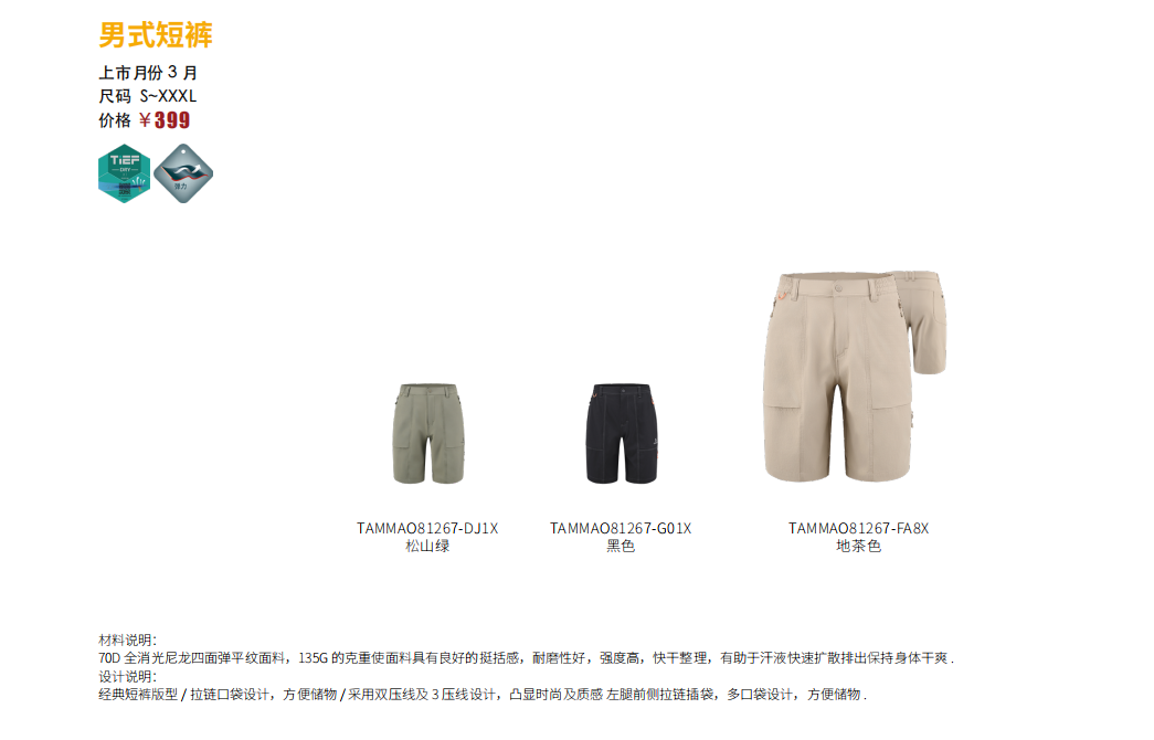 探路者男式短裤TAMMAO81267