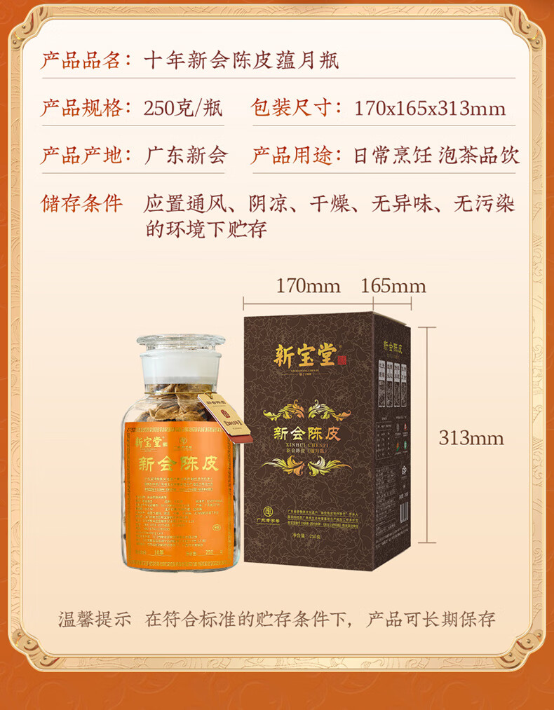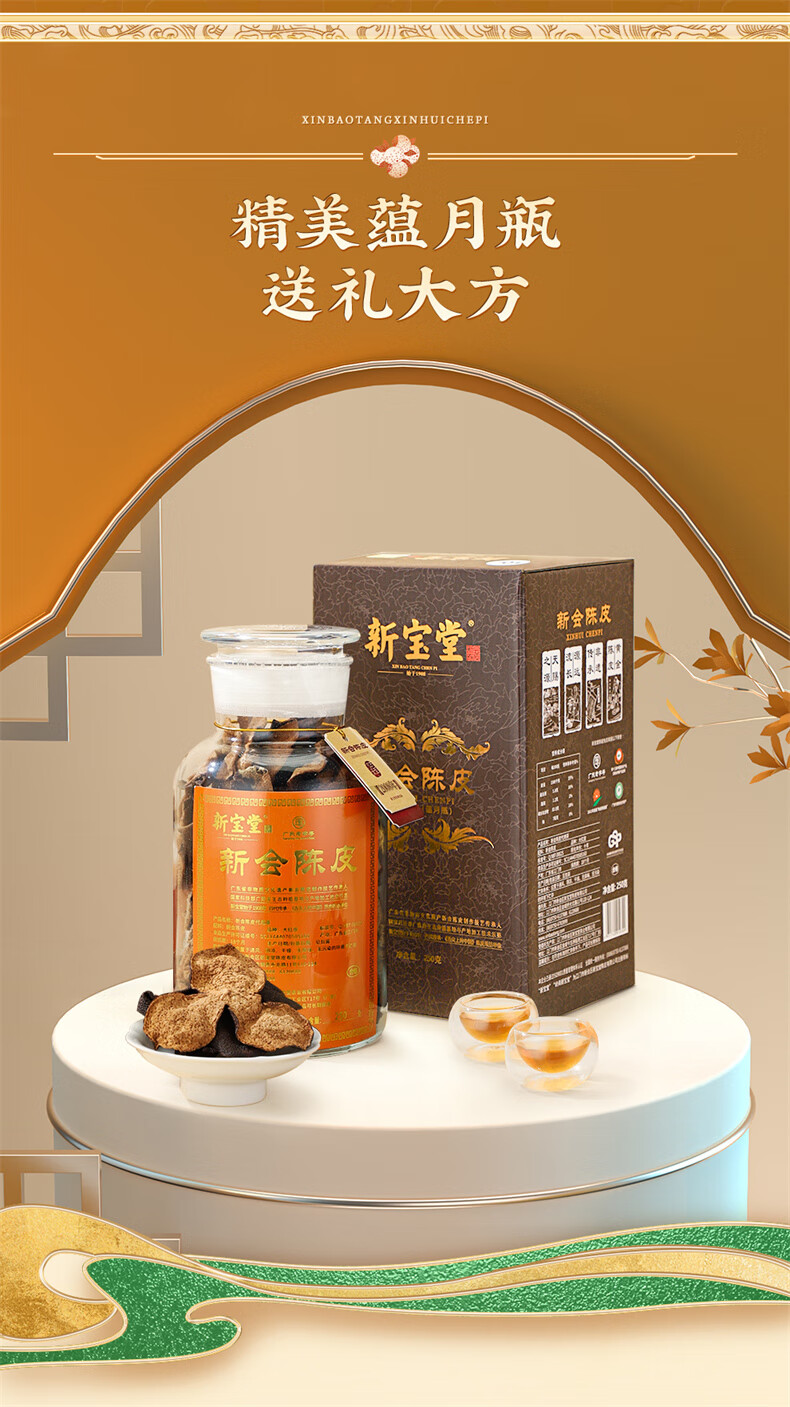 新宝堂 新会陈皮广东特产 老陈皮养生茶蕴月瓶礼盒250克