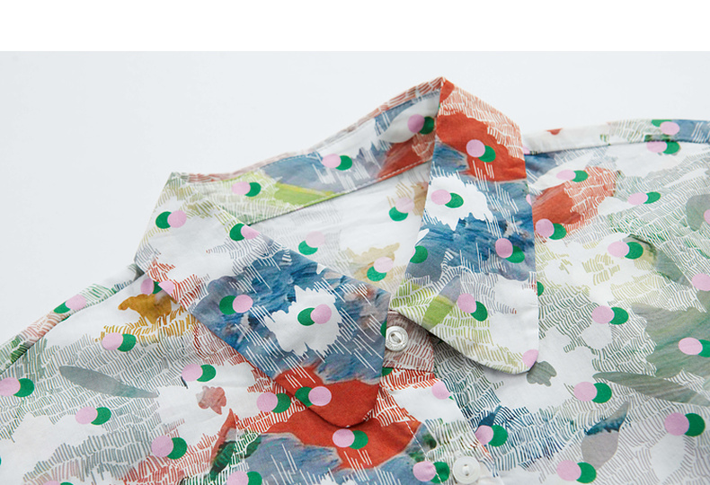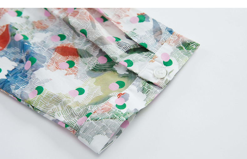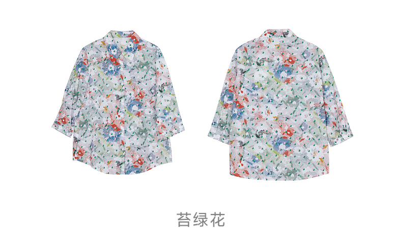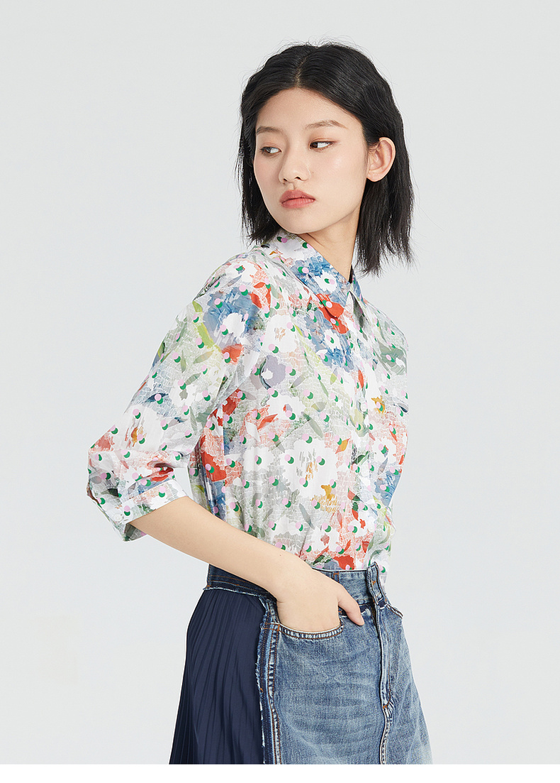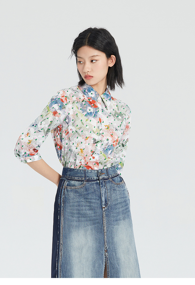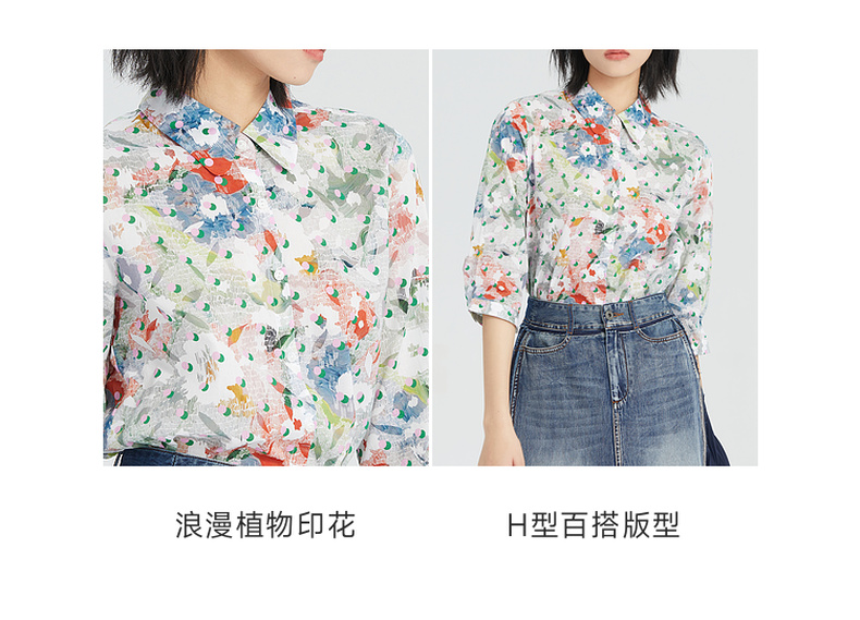 谜底纯棉花色衬衫女2023年夏季新款复古修身七分袖衬衣236MC6071