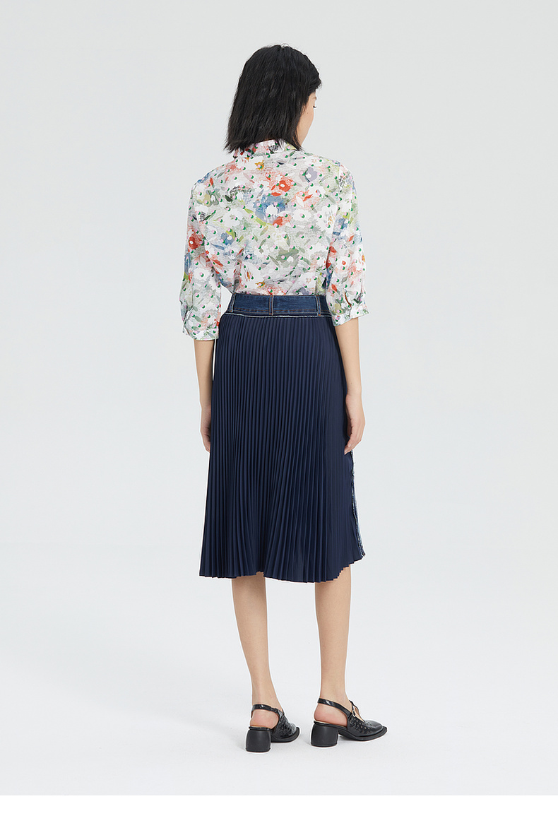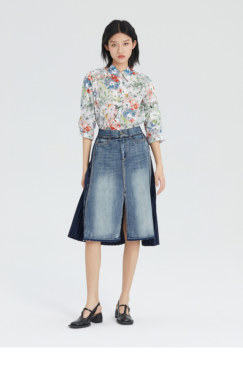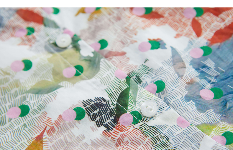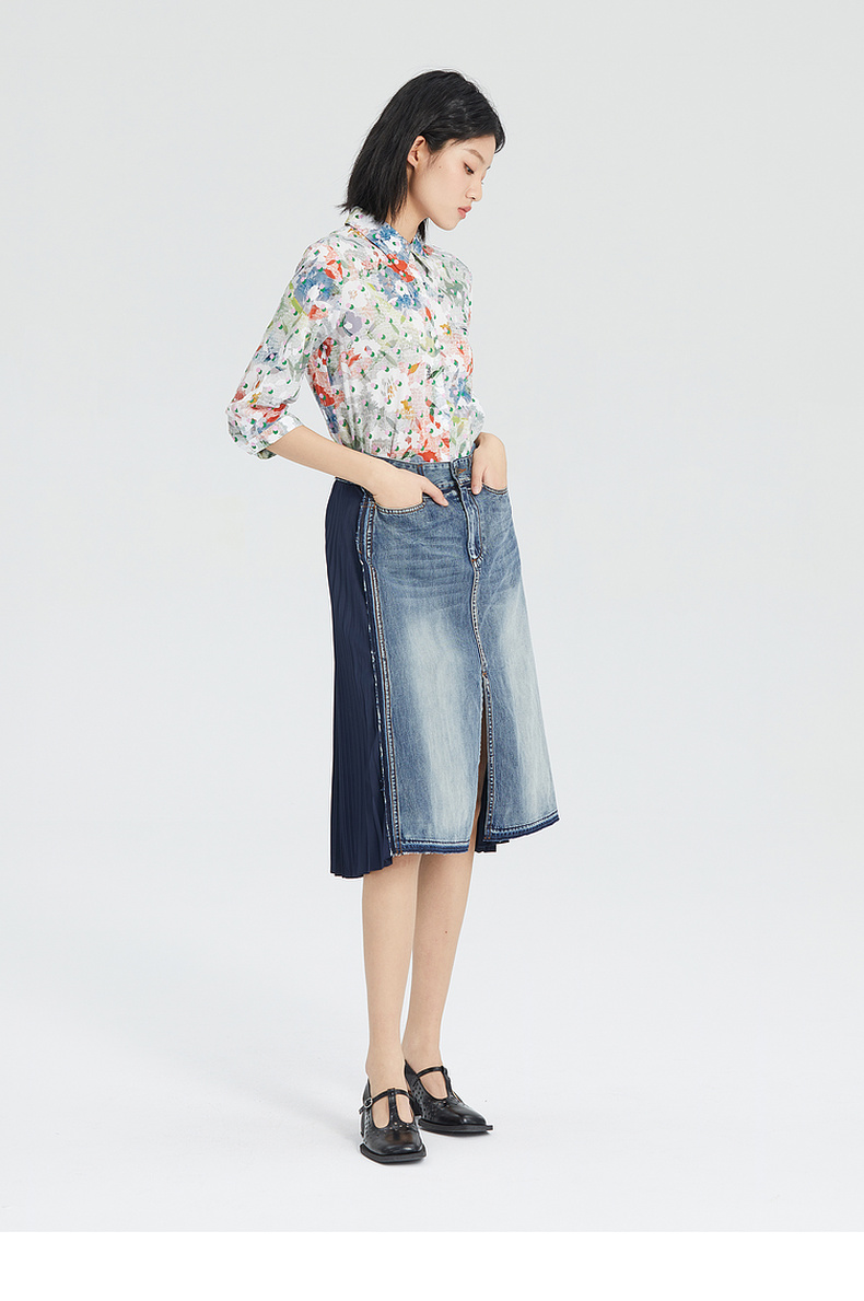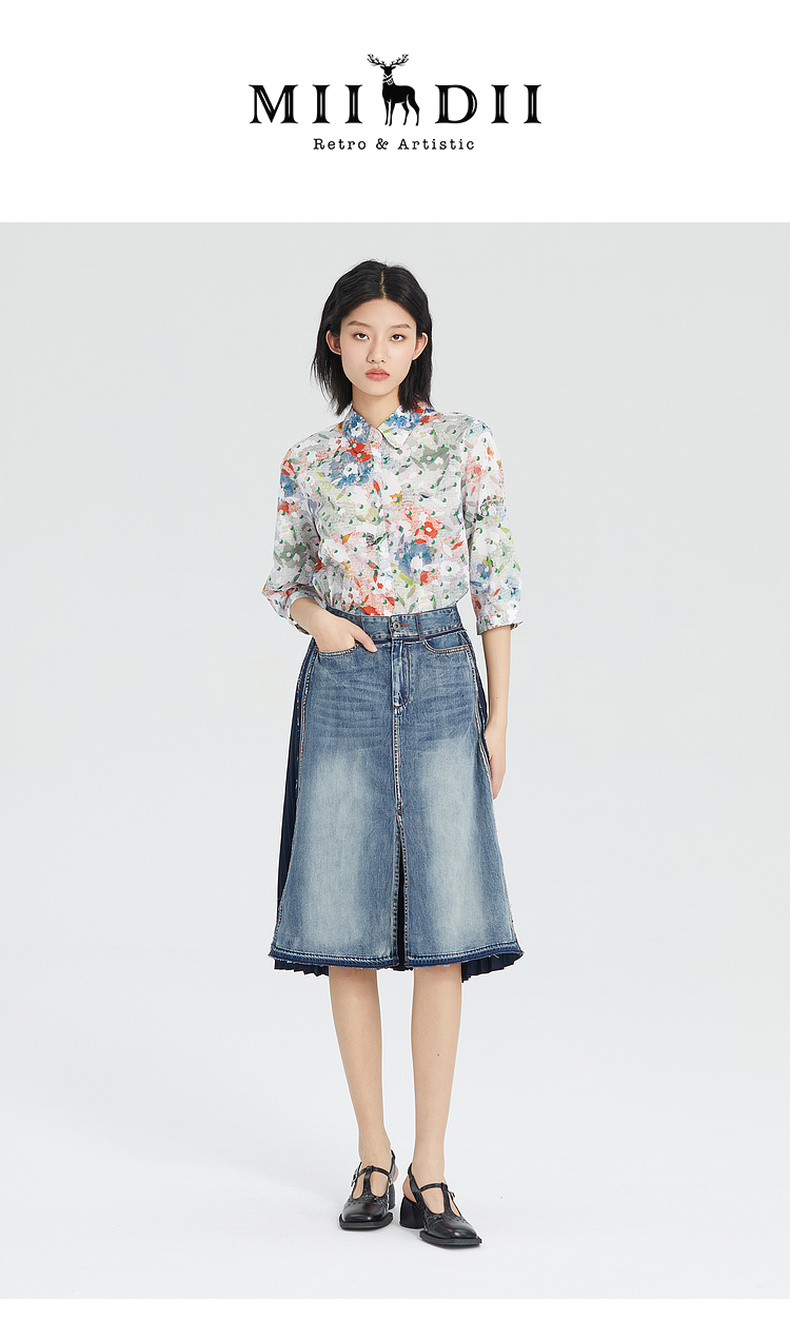 谜底纯棉花色衬衫女2023年夏季新款复古修身七分袖衬衣236MC6071