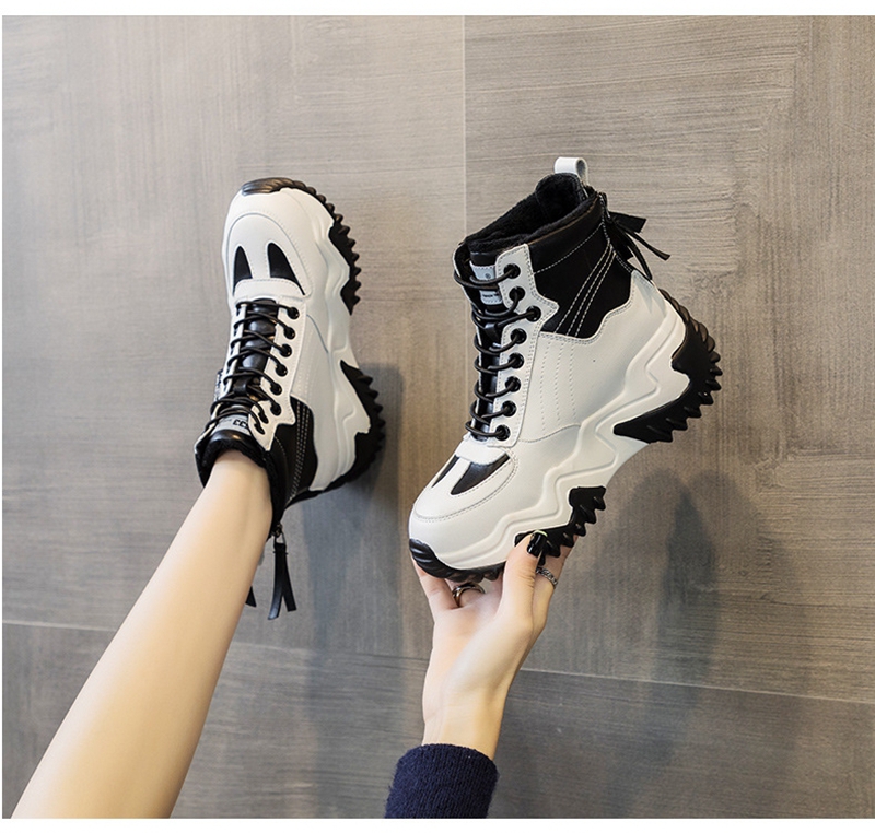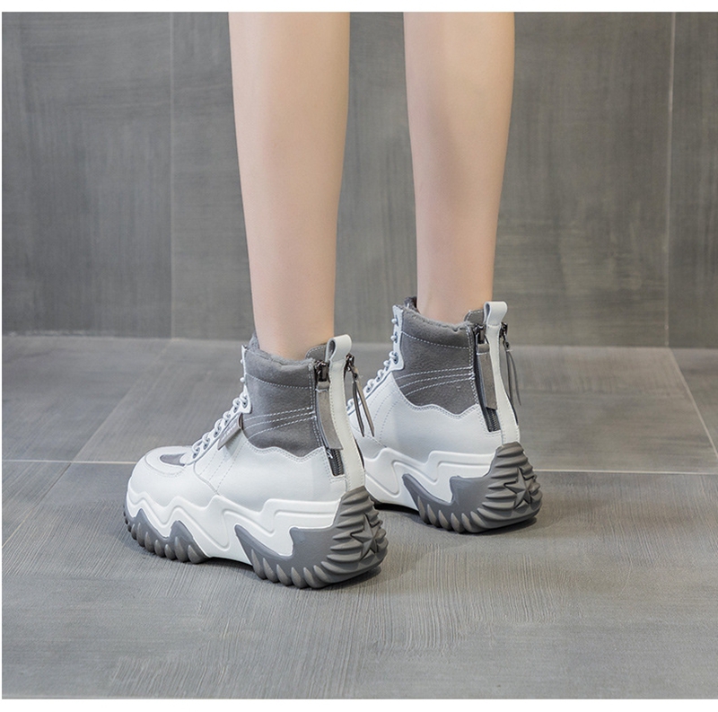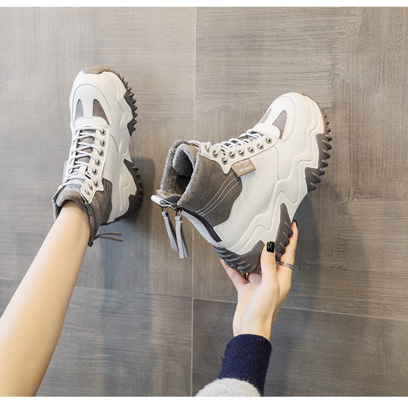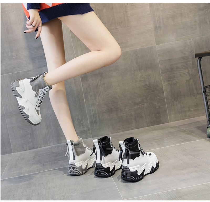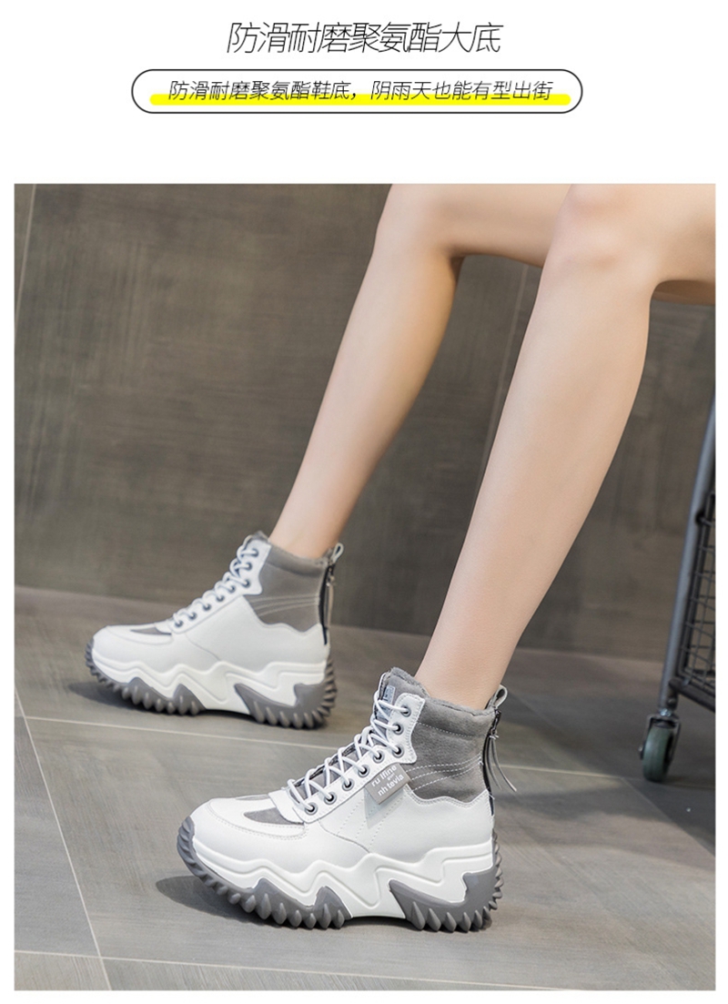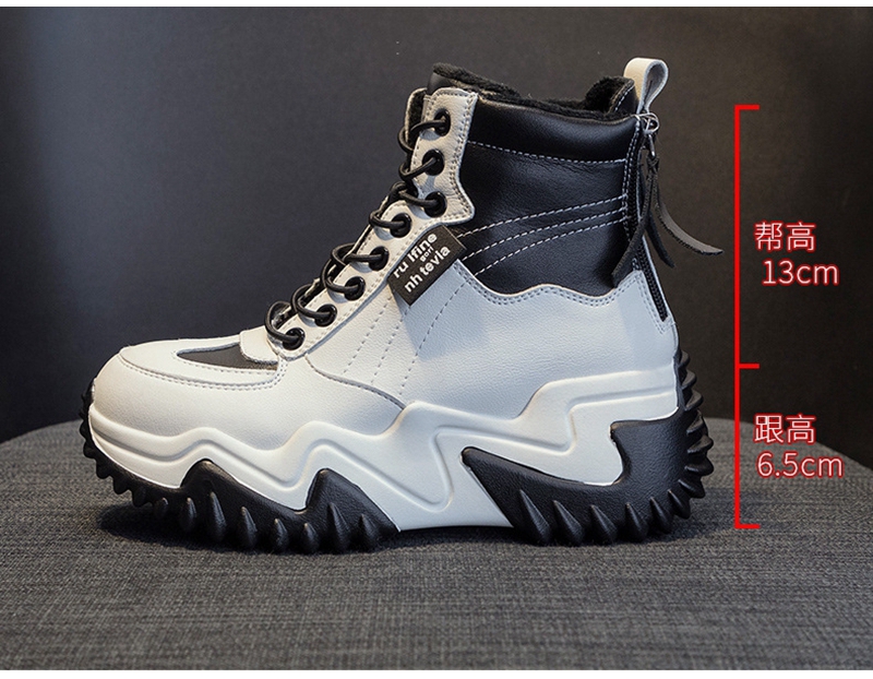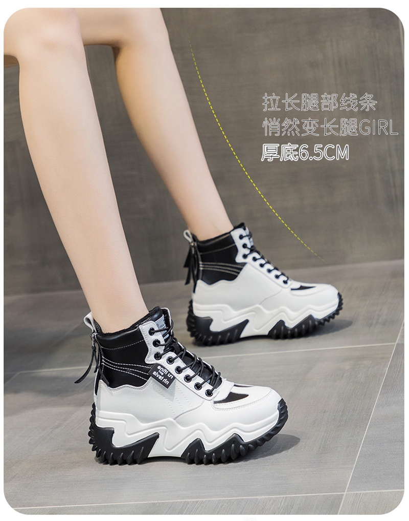 时尚圆头绑带后拉链厚底中跟加绒内增高休闲鞋
