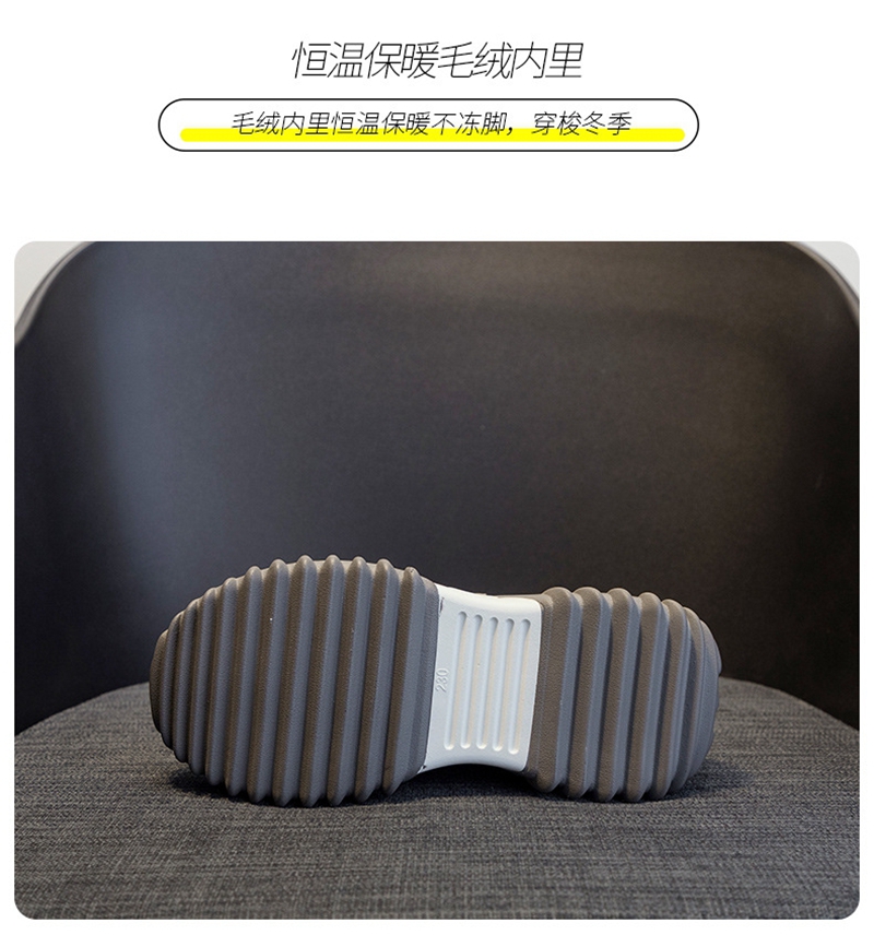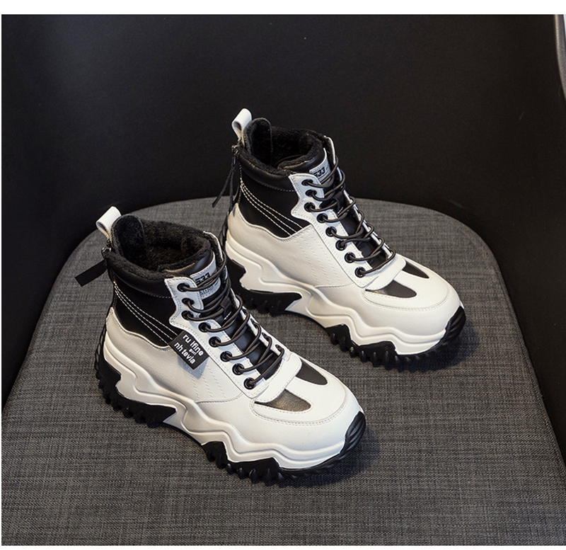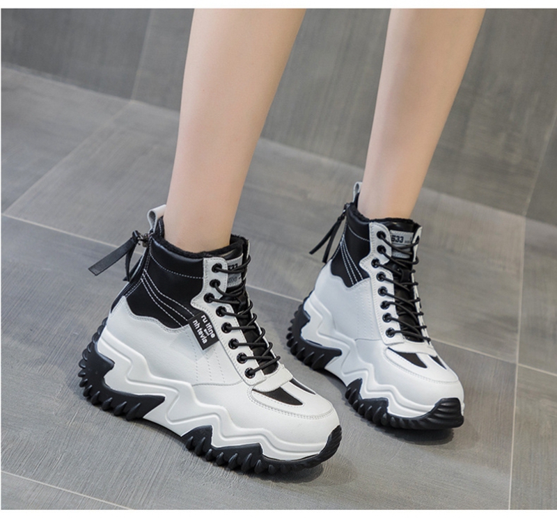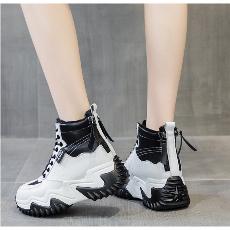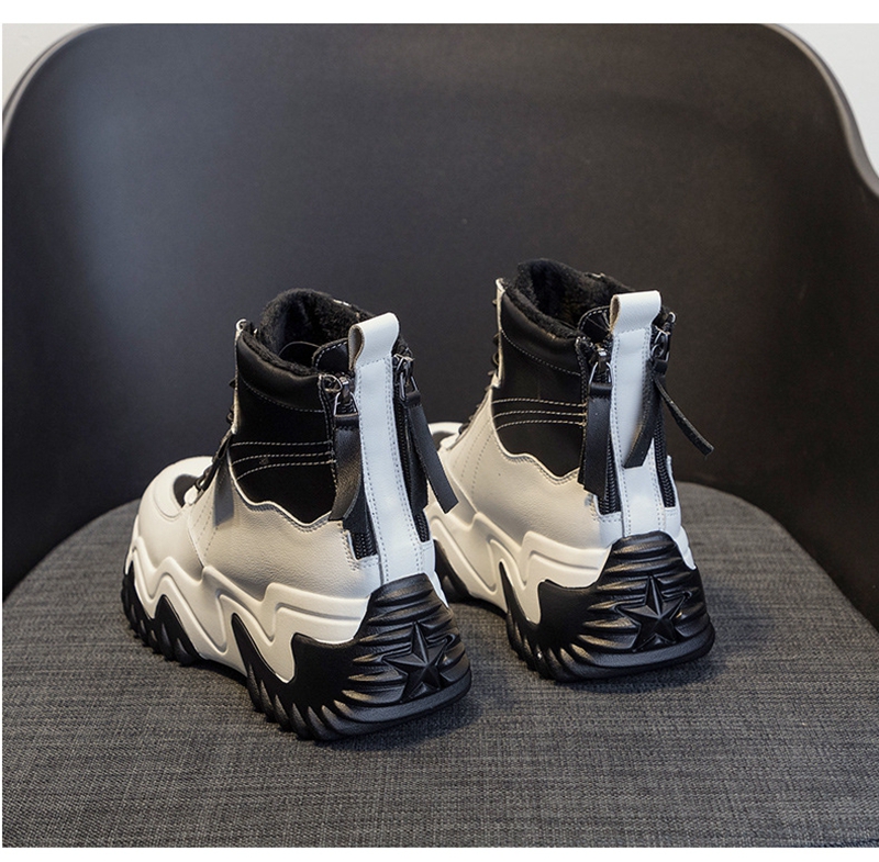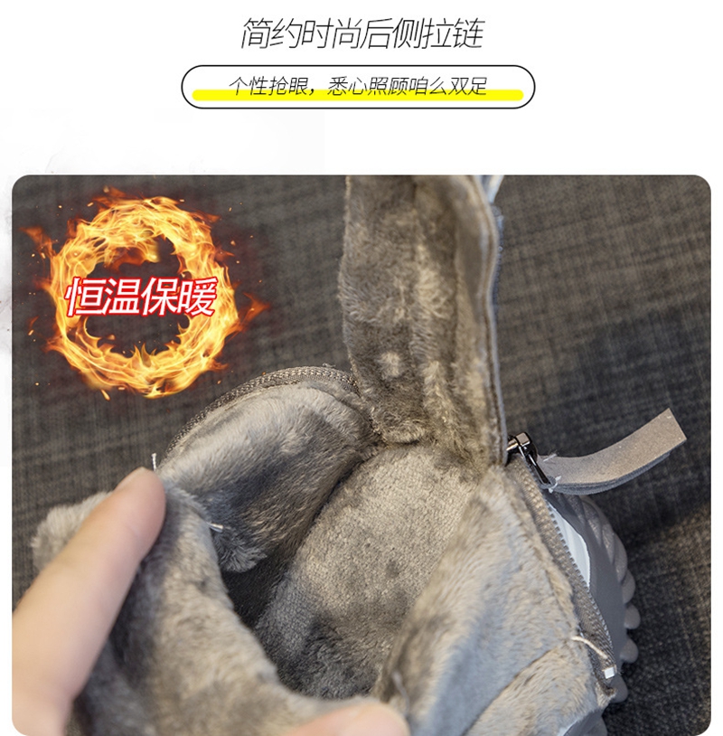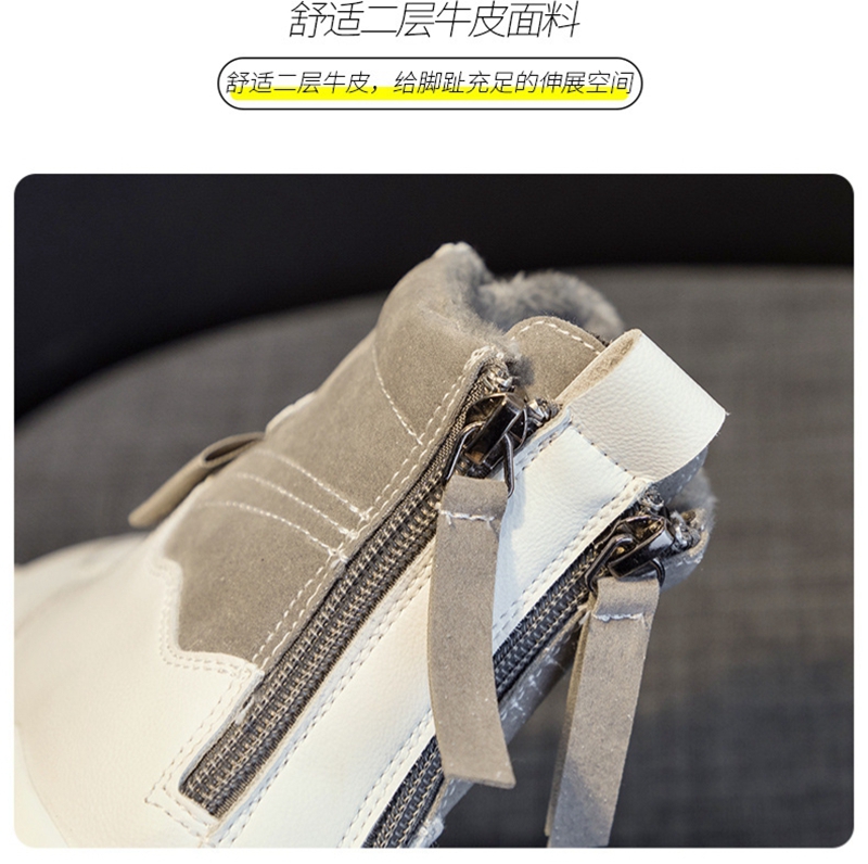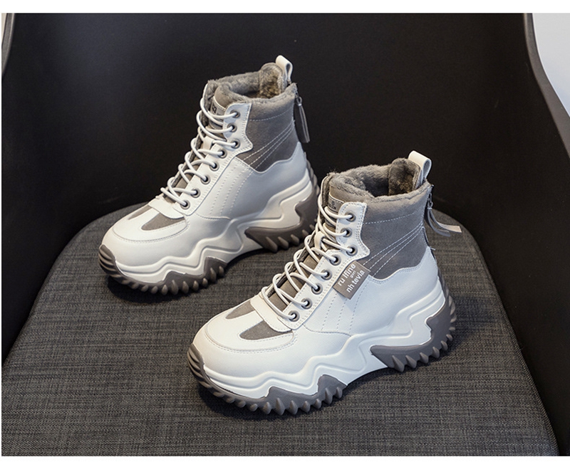 时尚圆头绑带后拉链厚底中跟加绒内增高休闲鞋