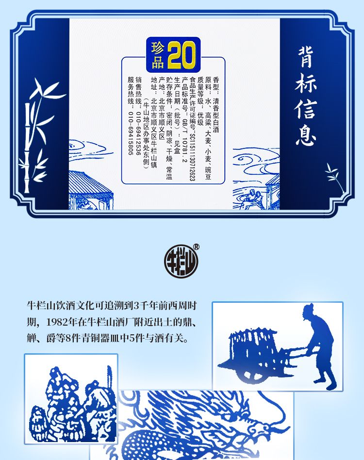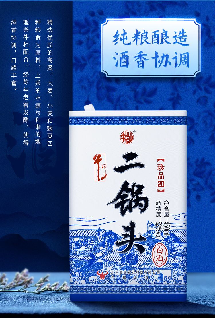 牛栏山二锅头珍品20 42度清香型白酒 单瓶450ml*1瓶包邮