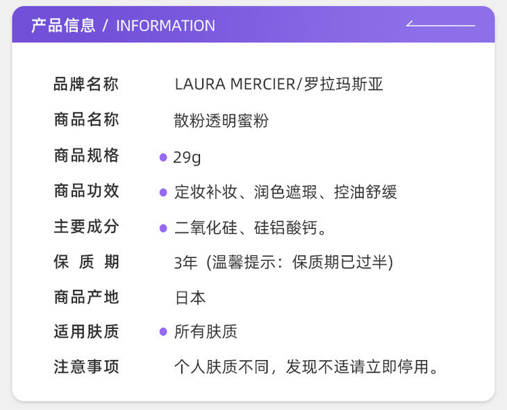 罗拉透明蜜粉29g 定妆粉哑光毛孔隐形遮瑕粉饼散粉扑