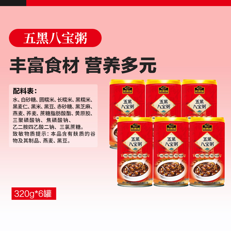 【活动价】南方黑芝麻八宝粥绿豆马蹄五黑八宝粥320g*6罐办公室宿舍营养充饥代餐