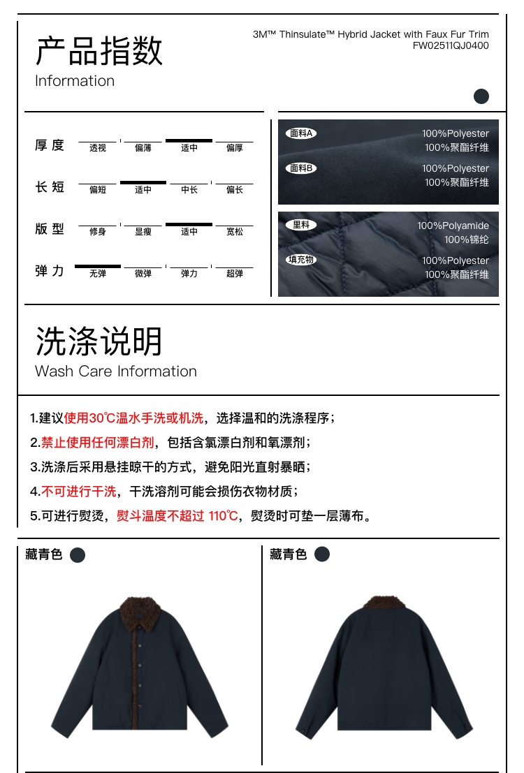 oneup 3M新雪丽拼毛棉服(男女同款)