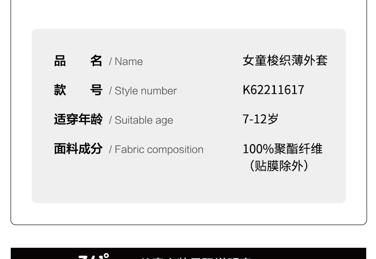 小361儿童薄外套春秋女中大童防风开衫K62211617