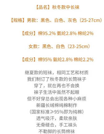 含棉量在95%以上才可以标示为“chun棉袜”