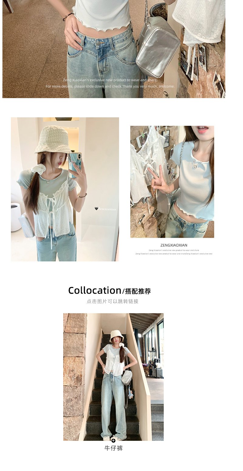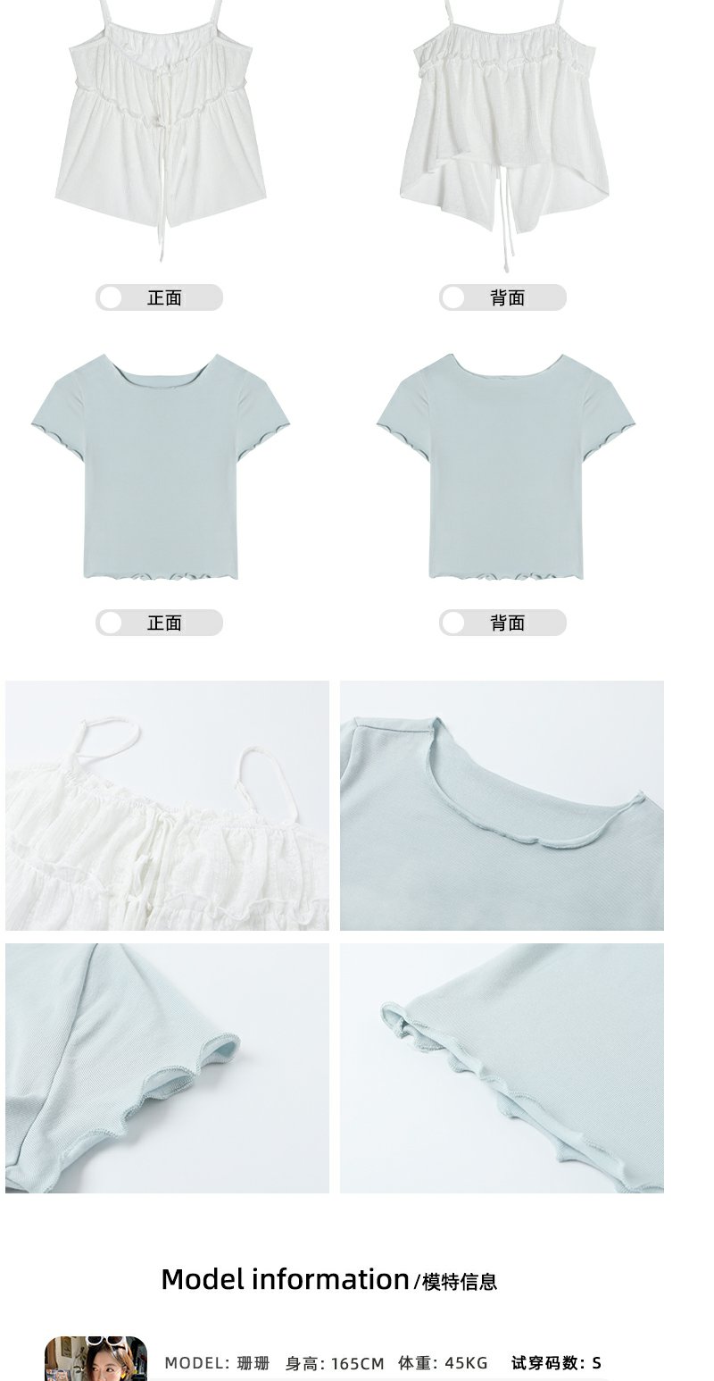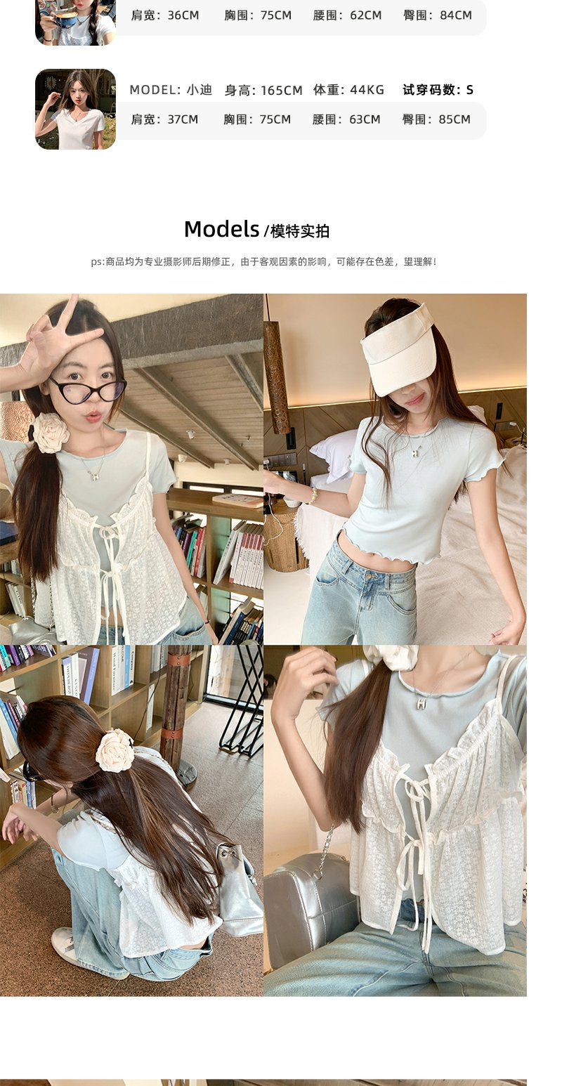 【129元任选2件】现货!叠穿蕾丝吊带短袖T
