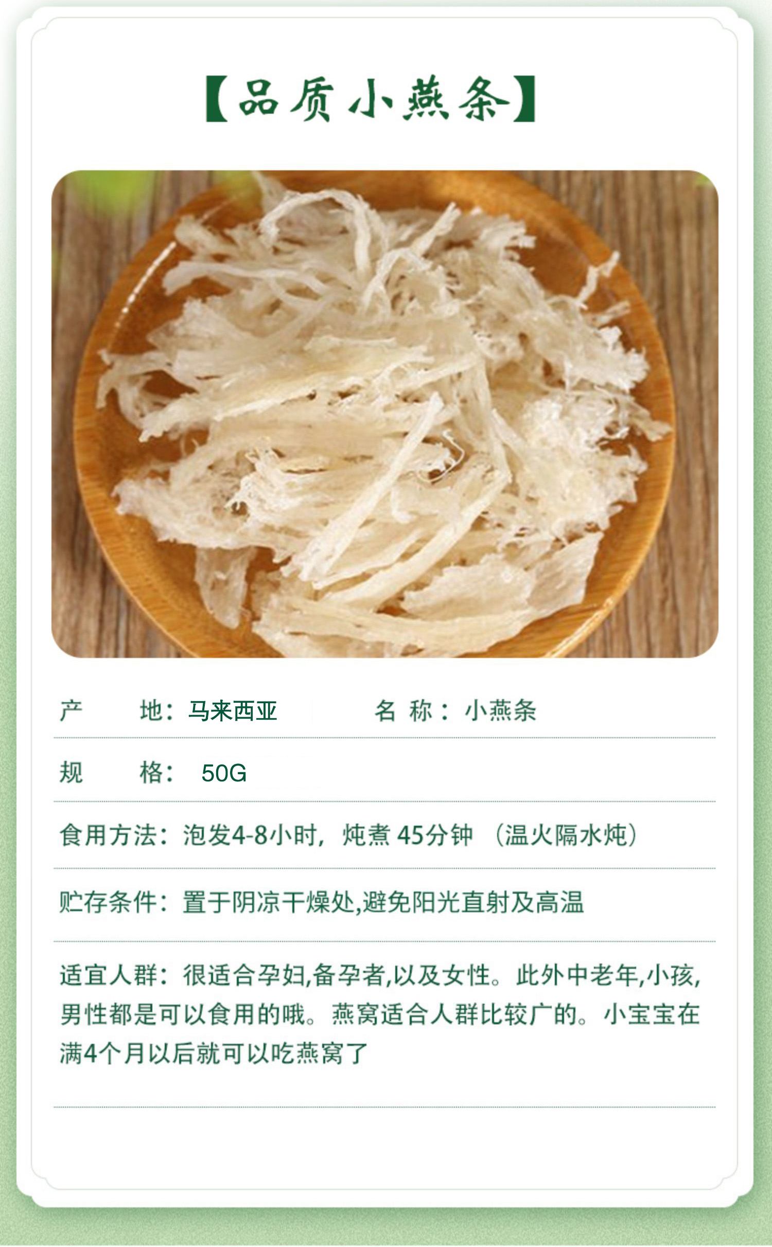 【拼团抢】599元50g马来西亚小燕条燕窝(原价699元)