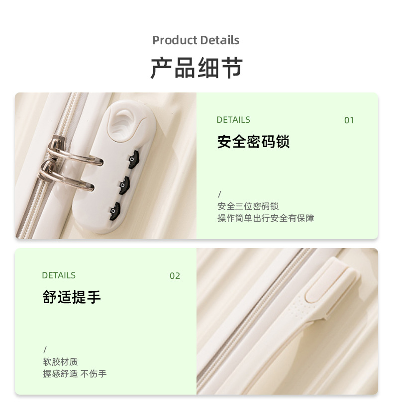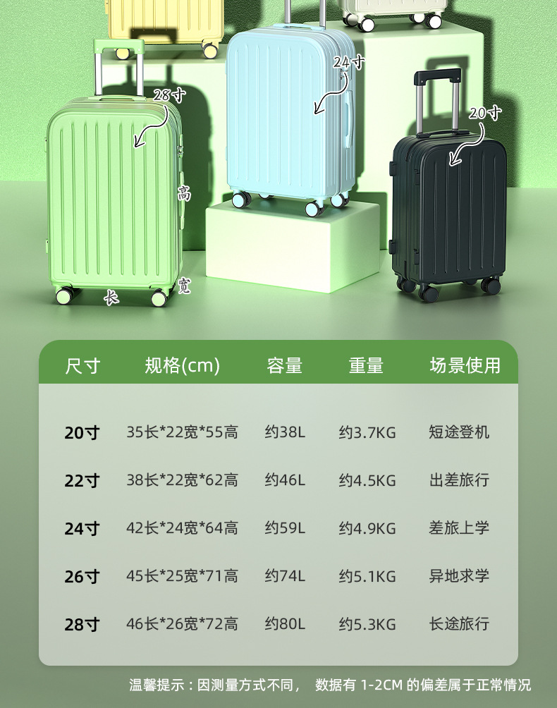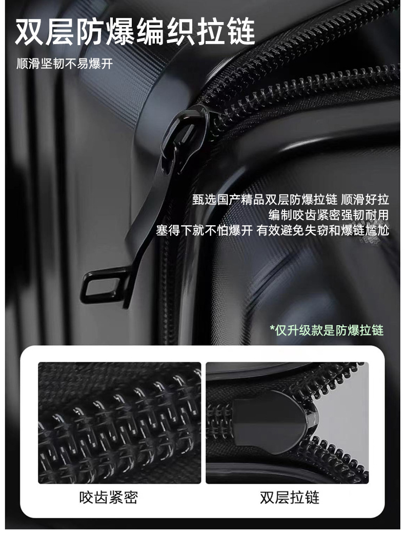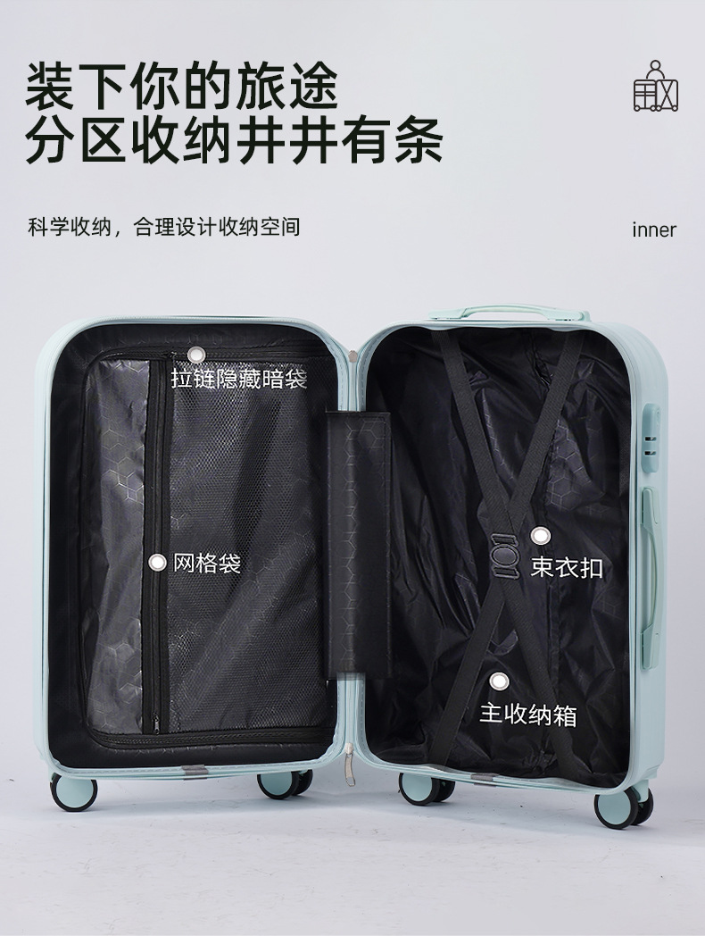 【轻盈便携!旅行出差必备】时尚旅人选择,轻便静音,多功能收纳;糖果色拉链随心搭,防爆拉链安心用。旅途中不再无聊,乘车充电便捷省;多向万向轮,轻松穿梭人潮间!