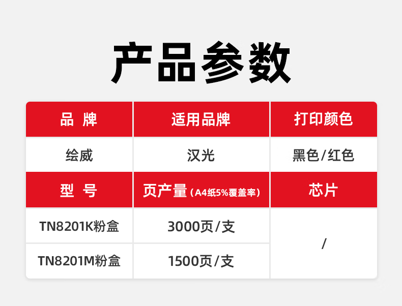 绘威TN8201K黑色/红色硒鼓 适用汉光HG P8201 P8201R打印机墨粉盒 墨粉 墨盒