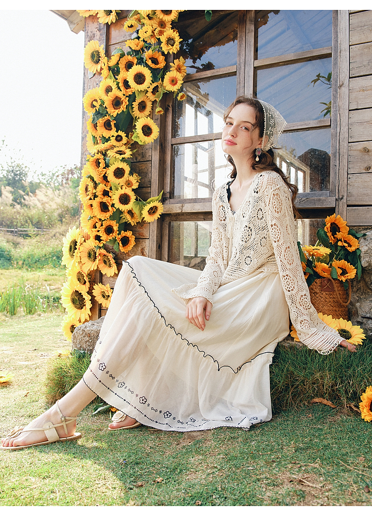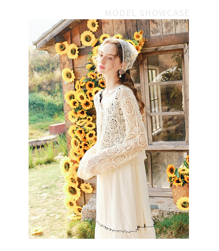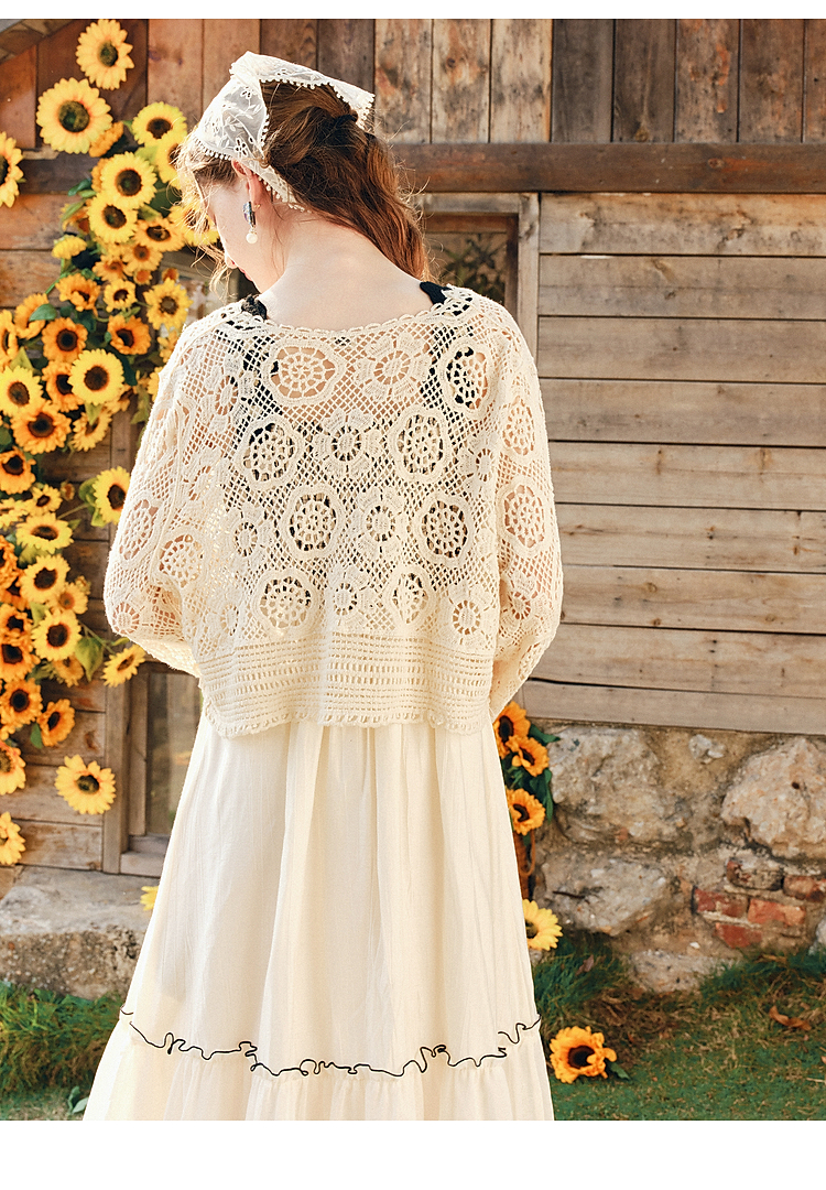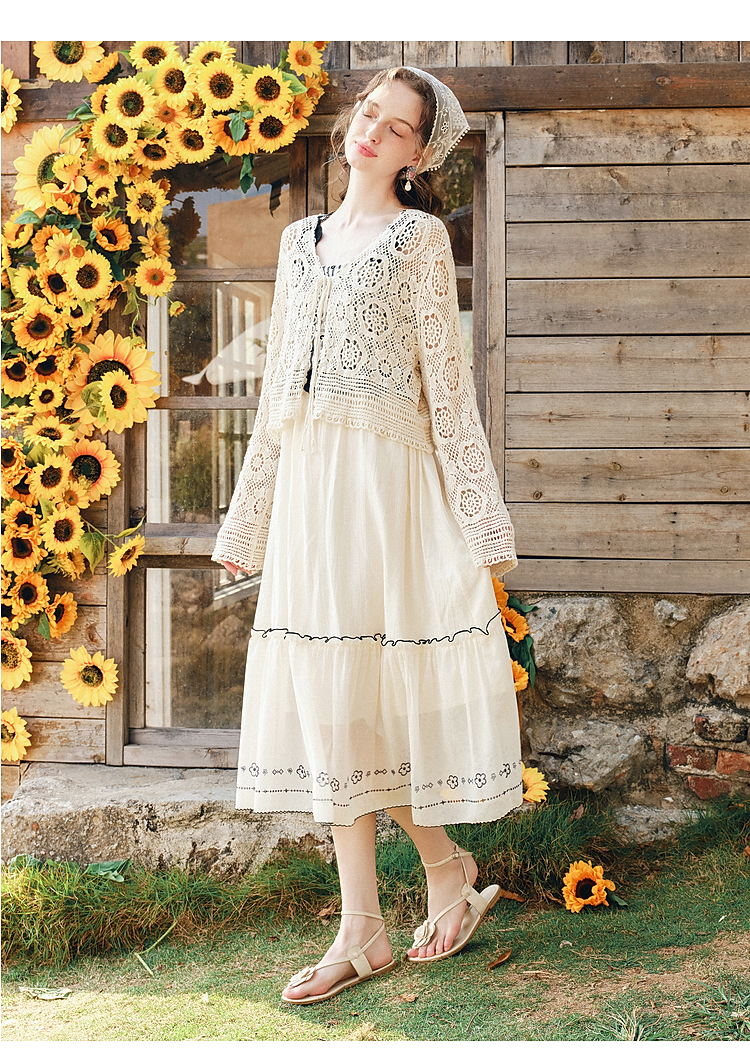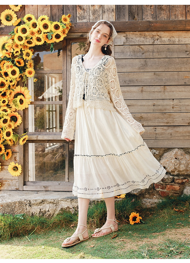 两三事 心动记号 2026春季新款田园风镂空编织绑带针织开衫女