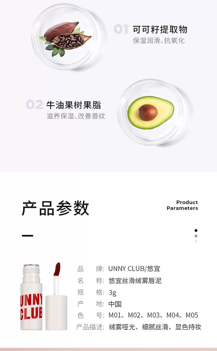 【特价清仓】unny悠宜丝滑绒雾唇泥3g,效期:2026/8-2026/12