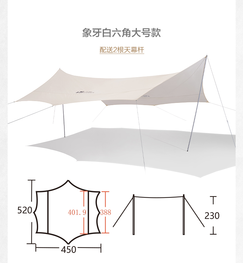 牧高笛 俊庭440 六角天幕橄榄绿 NX20661014
