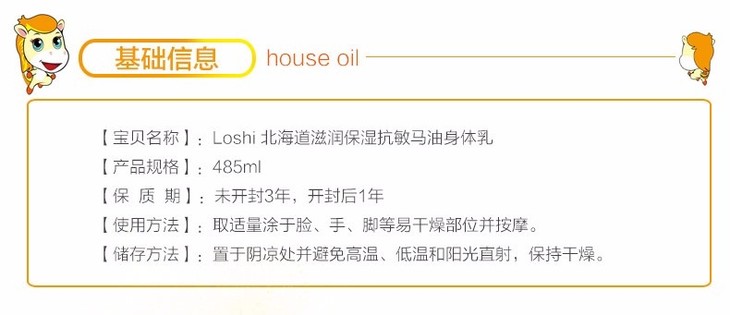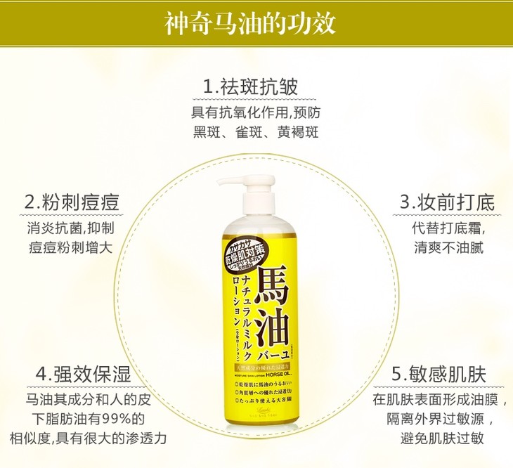 (保税仓)日本Loshi北海道马油身体乳压力泵装 485ml