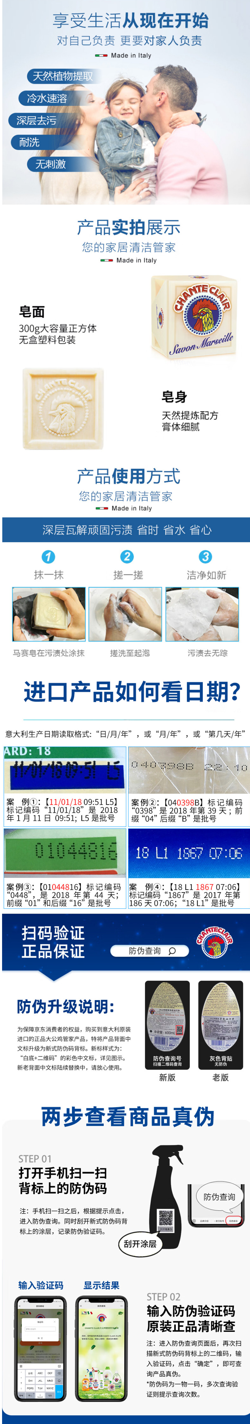 CHANTECLAIR大公鸡管家 马赛洗衣皂 肥皂 内衣皂 手洗皂 (意大利进口) 300g 4806413