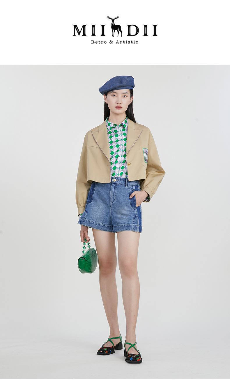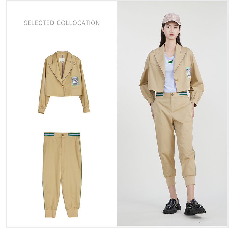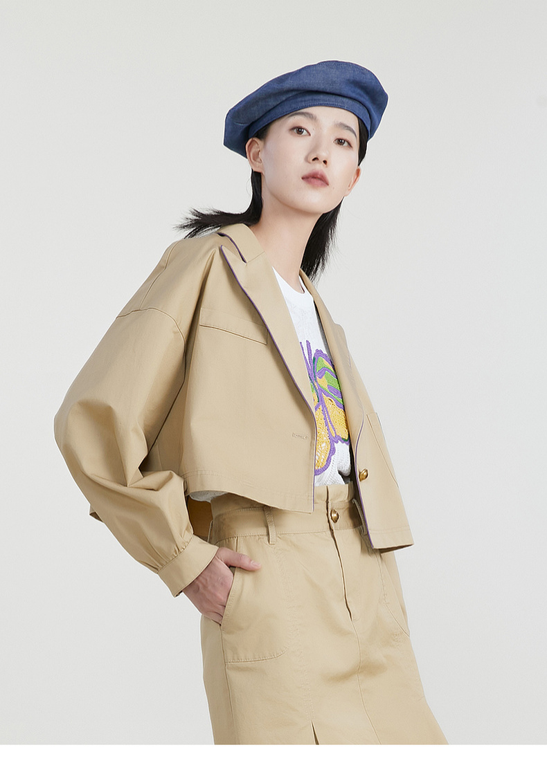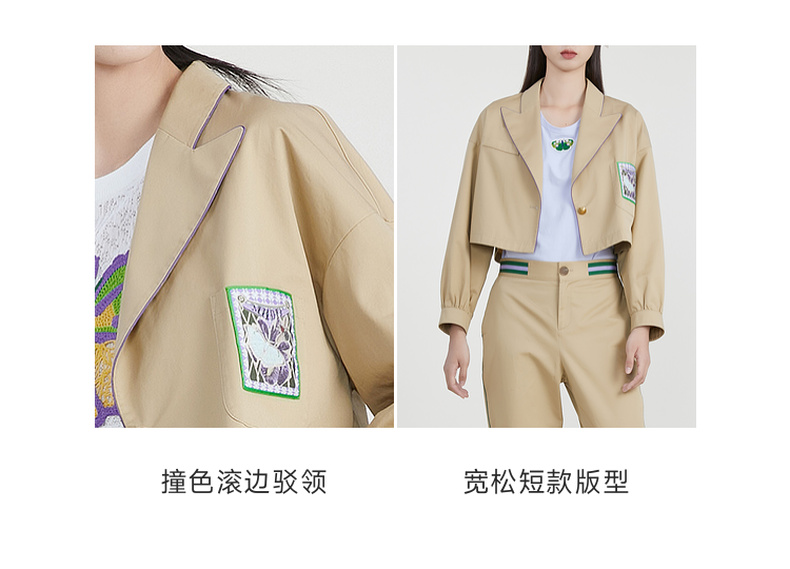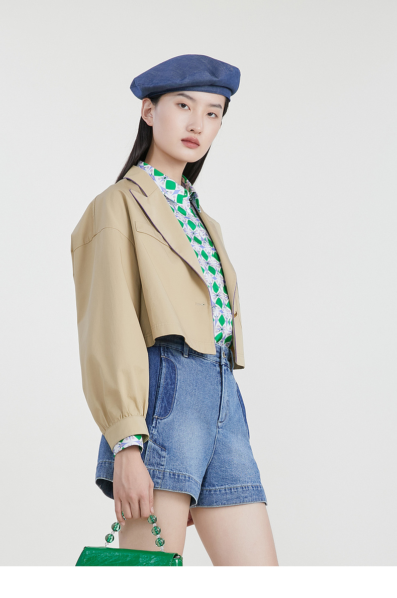 谜底短款外套女2023春季新款简约百搭西装领小外套长袖231MW0012