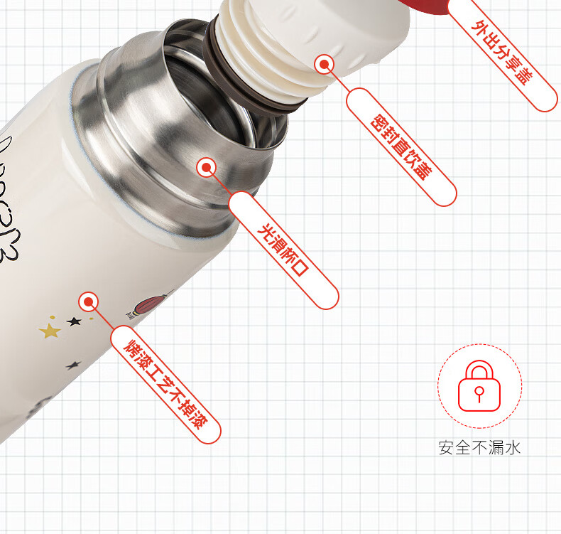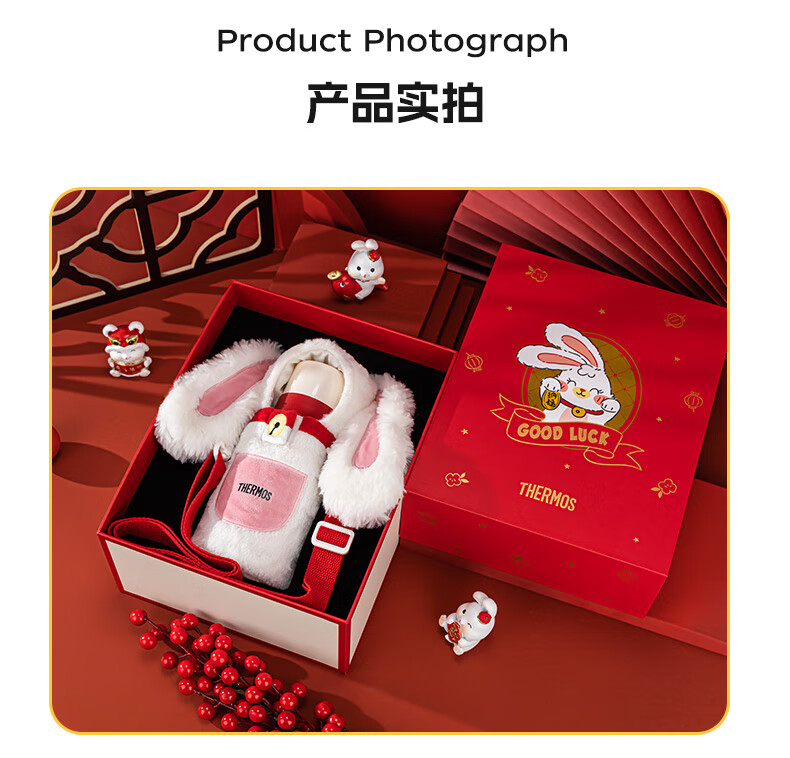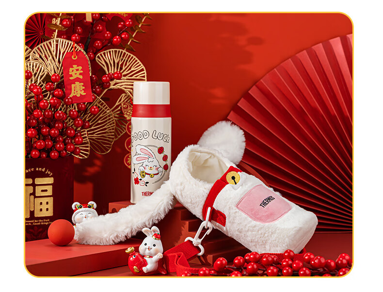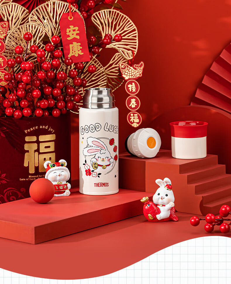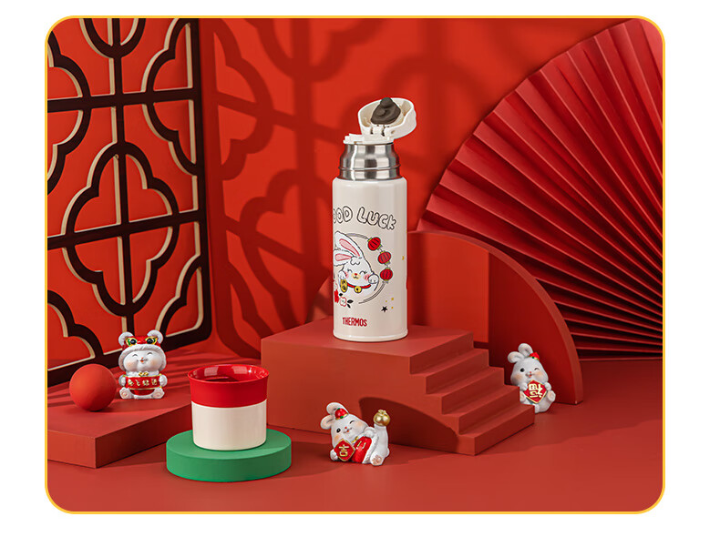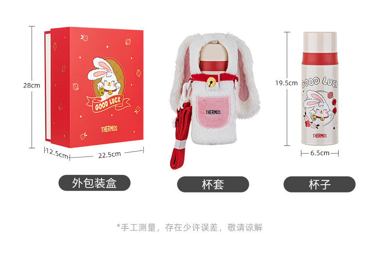 膳魔师THERMOS 兔年保温杯可爱毛绒兔子儿童学生两用不锈钢直饮杯