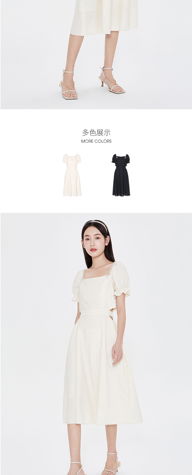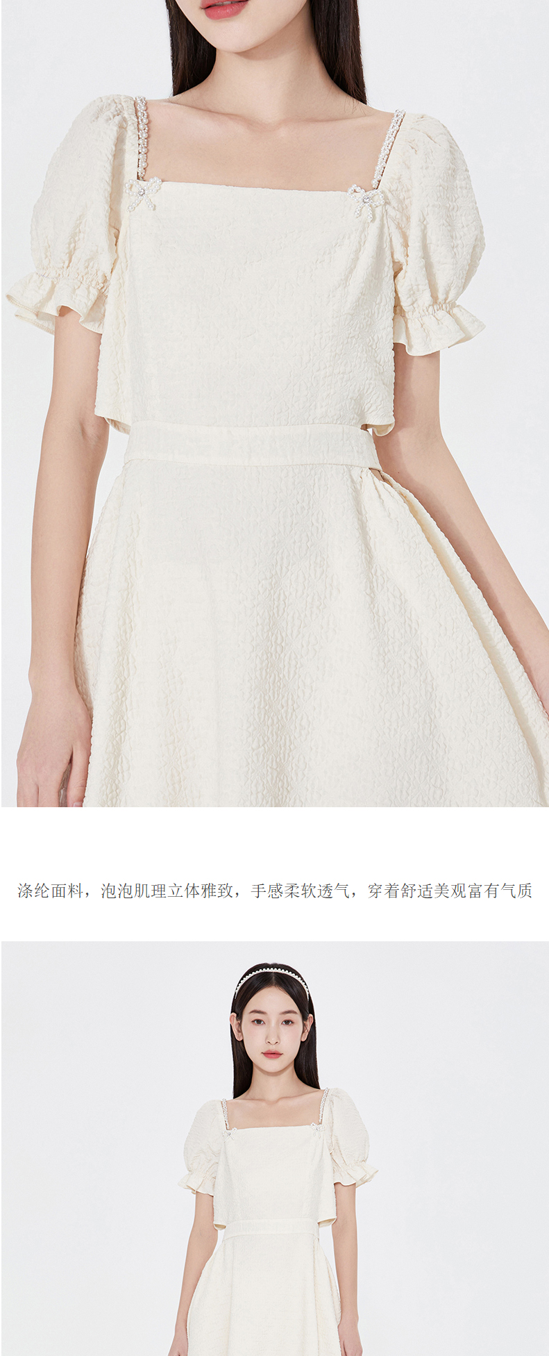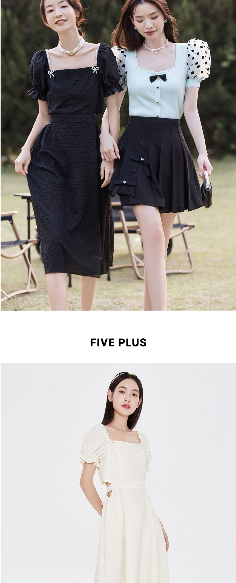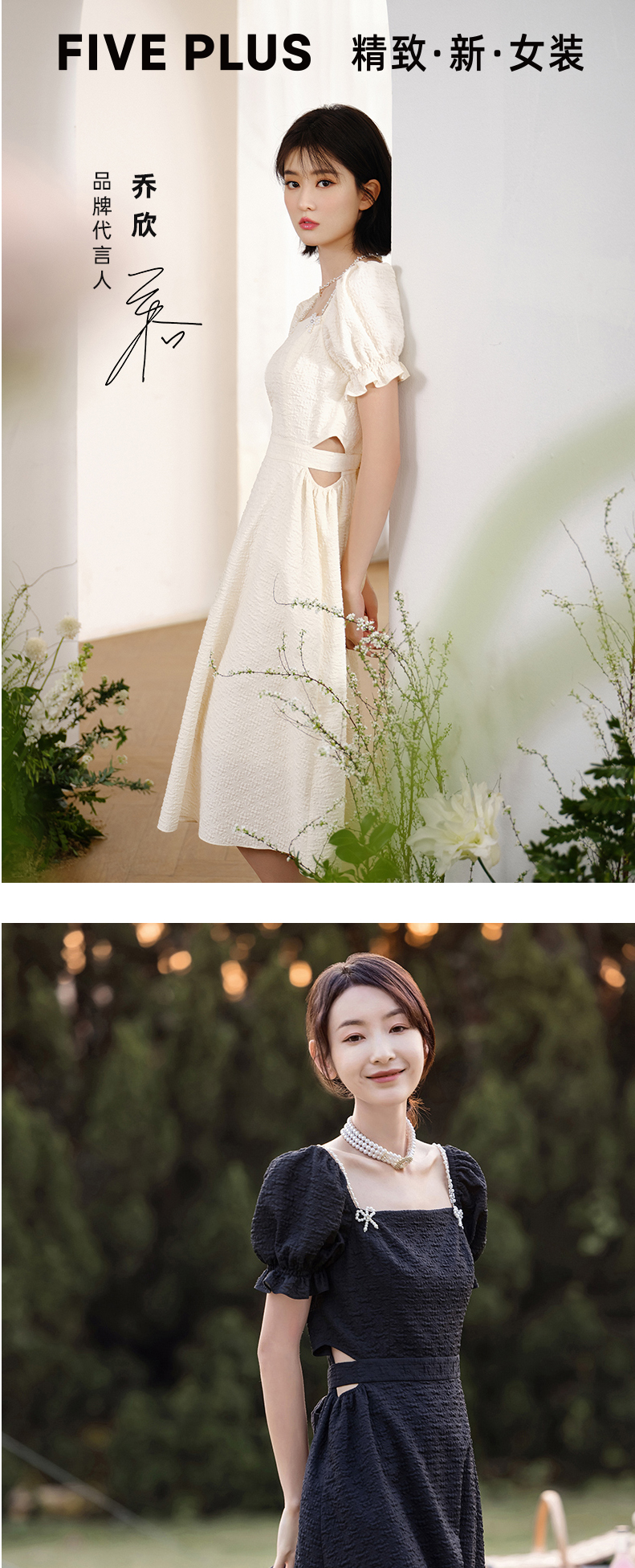 FIVE PLUS乔欣同款2022新款连衣裙夏高级感法式方领泡泡袖裙子女2WN2082200