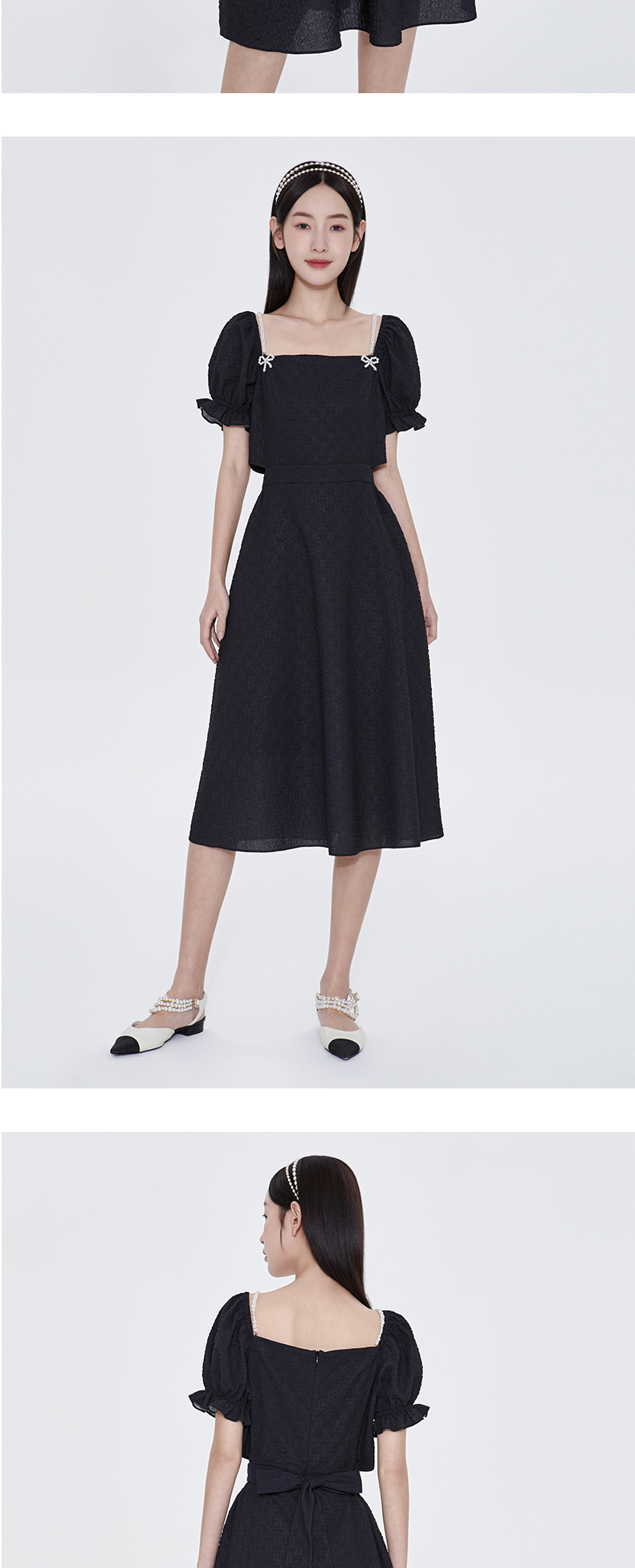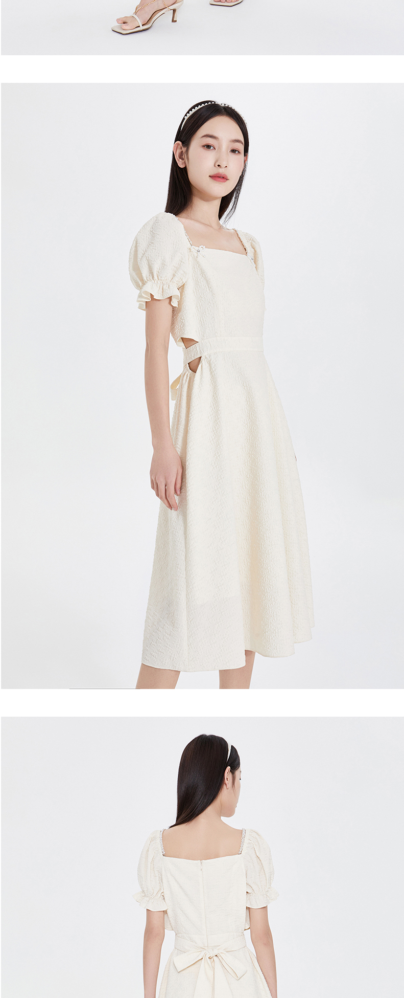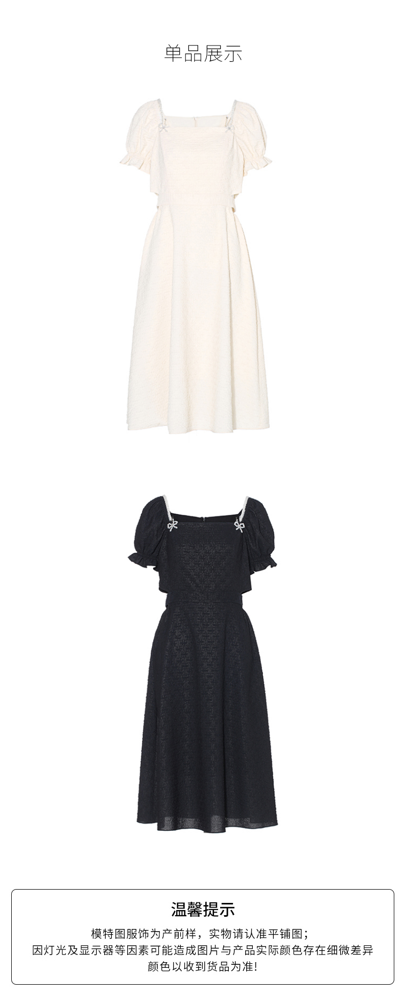 FIVE PLUS乔欣同款2022新款连衣裙夏高级感法式方领泡泡袖裙子女2WN2082200