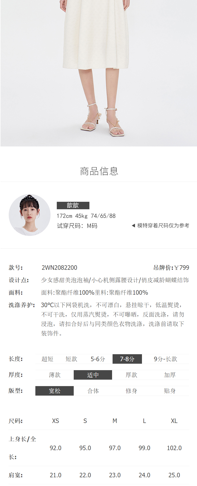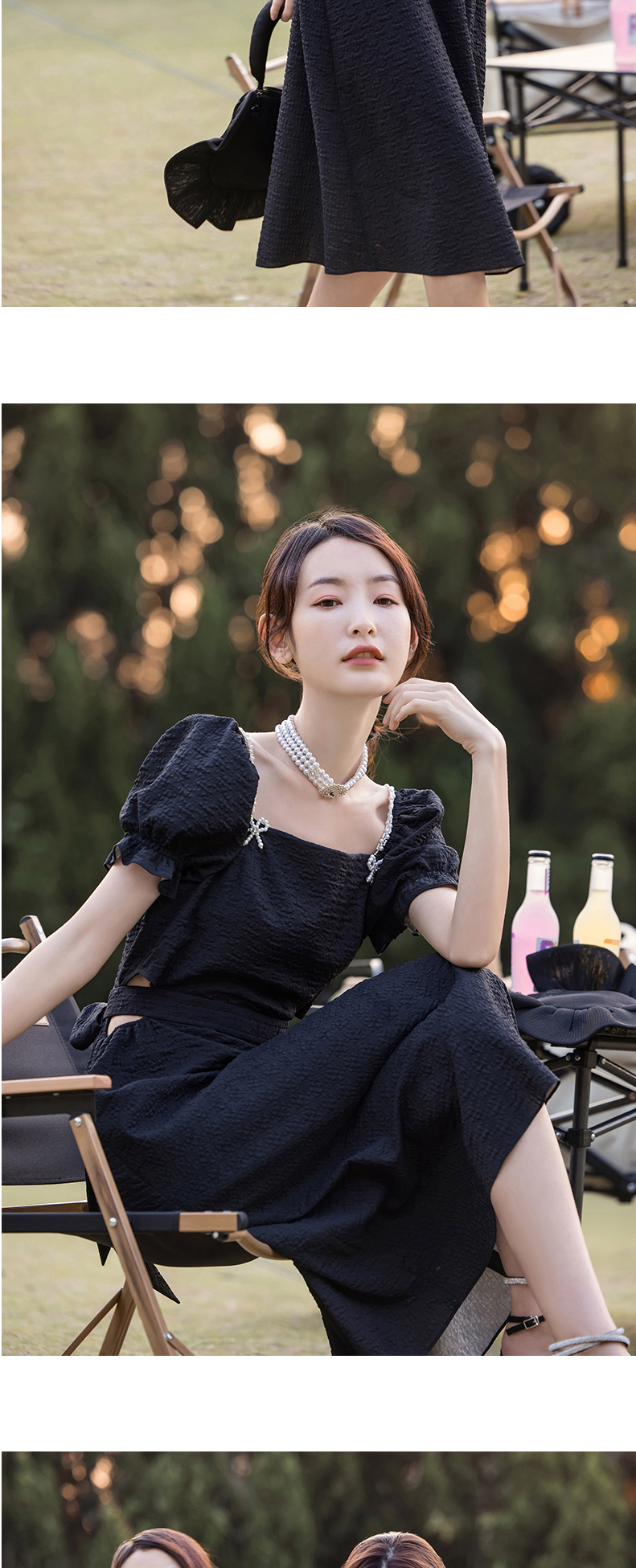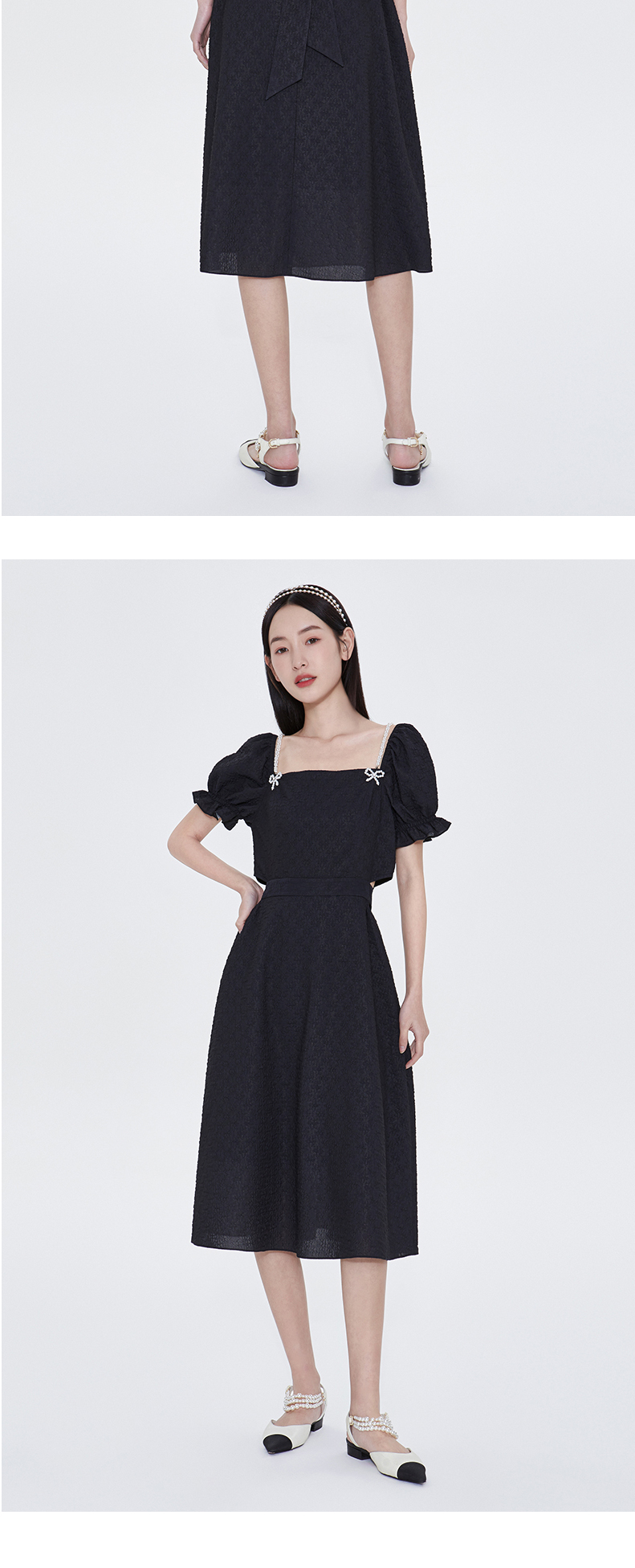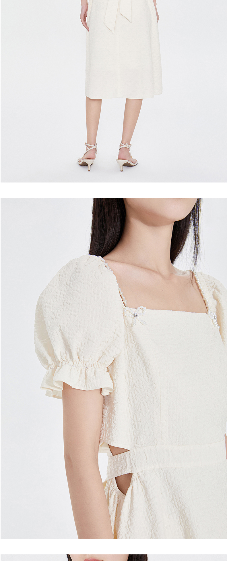 FIVE PLUS乔欣同款2022新款连衣裙夏高级感法式方领泡泡袖裙子女2WN2082200