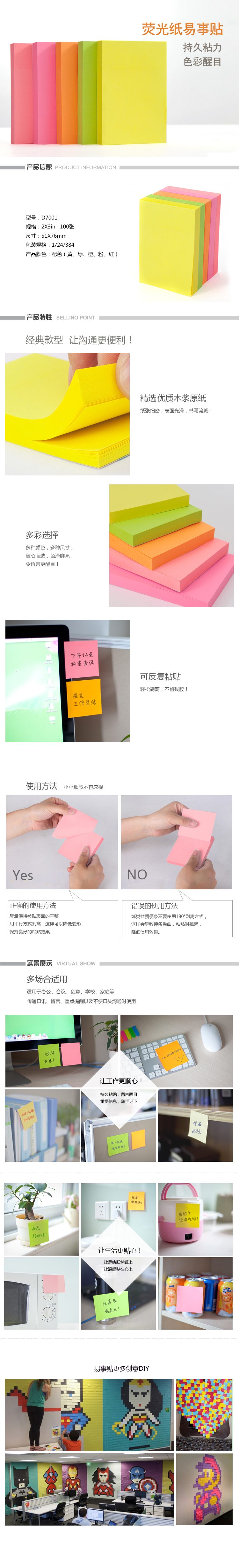 齐心 D7001 荧光纸易事贴 3"*2" 100张 5色告示贴便利贴优事贴便签纸N次贴随机混色出