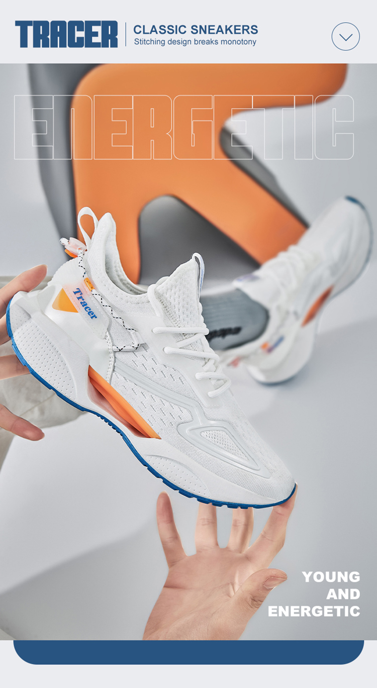 【男士飞织透气休闲鞋】舒适时尚加棉护踝鞋口 飞织+滴塑材质脚感轻盈